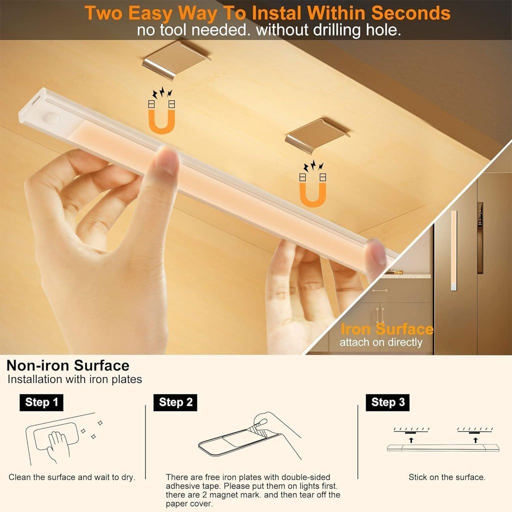 مصباح خزانة لاسلكي قابل لإعادة الشحن مزود بمستشعر حركة