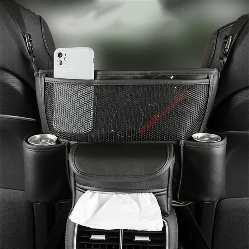 حقيبة تخزين مركزية جلدية للمقعد الأمامي للسيارة