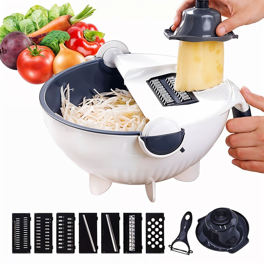 وعاء تقطيع خضراوات 9 في 1 مع سلة تصريف