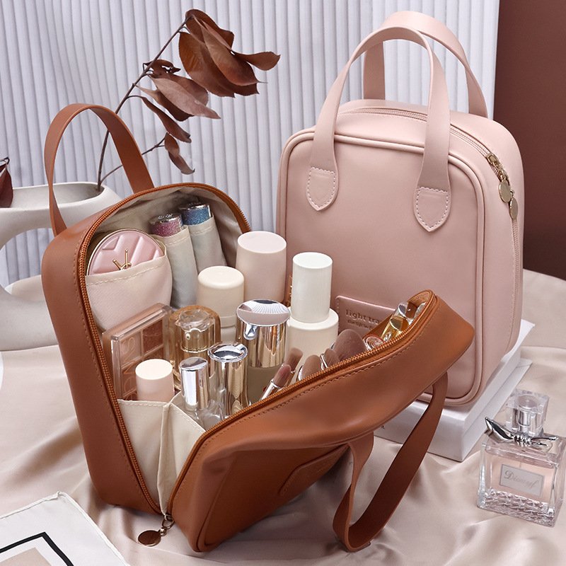 de rangement de grande capacité “Pochette de maquillage que vous pouvez transporter avec style” Cloisons avec une excellente capacité de stockage – Livrée avec un soufflet qui la rend facile à tenir debout seul – Facile à ranger, grande capacité Pochette autoportante pouvant être utilisée comme commode portable Pochette polyvalente ! Il s’agit d’un type autonome qui permet de voir facilement le contenu, et il existe des cloisons qui facilitent l’insertion et le retrait des objets , afin que vous puissiez facilement les organiser. Taille de grande capacité pouvant contenir beaucoup d’espace Le large soufflet permet un grand espace de rangement ◎ Il peut contenir non seulement les produits cosmétiques que vous utilisez toujours, mais également les lotions et les sérums, afin que vous puissiez tous les utiliser facilement au même endroit ♪ Une poche intérieure facile à organiser et accessible rapidement et facilement . Cloison principale x 1 ■ Demi-poche x 3 pour un rangement facile du rouge à lèvres, etc. ■ Poche longue x 3 pour un rangement facile des pinceaux , etc. Facile à transporter La poignée arrière. La pochette de style sac le rend facile à transporter sans se sentir déplacé. Le faux cuir donne une impression de haute qualité et a une texture robuste qui fait ressortir vos mains.Points de détailDouble fermeture éclair avec breloque qui facilite l’ouverture et la fermetureDouble fermeture éclairGrande ouvertureLa fermeture éclair va jusqu’en bas, elle s’ouvre donc largement et permet Vous pouvez mettre et retirer des objets. Logo simple et élégant TAILLE – Longueur : environ 19 cm Largeur : environ 15,5 cm Profondeur : environ 8 cm Hauteur de la poignée : environ 9 cm . Poids : environ 125 g [Contenu du kit]・1 article・Corps de la pochette
