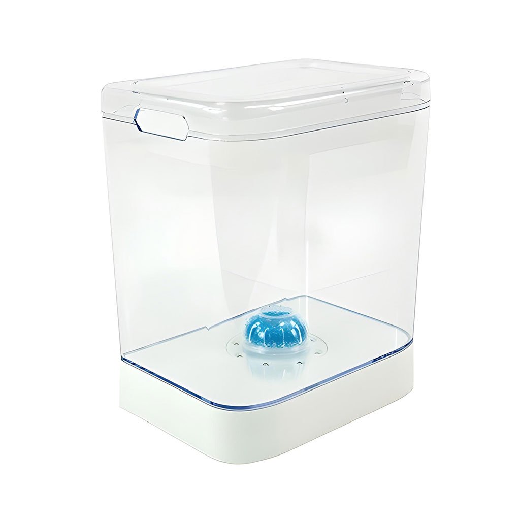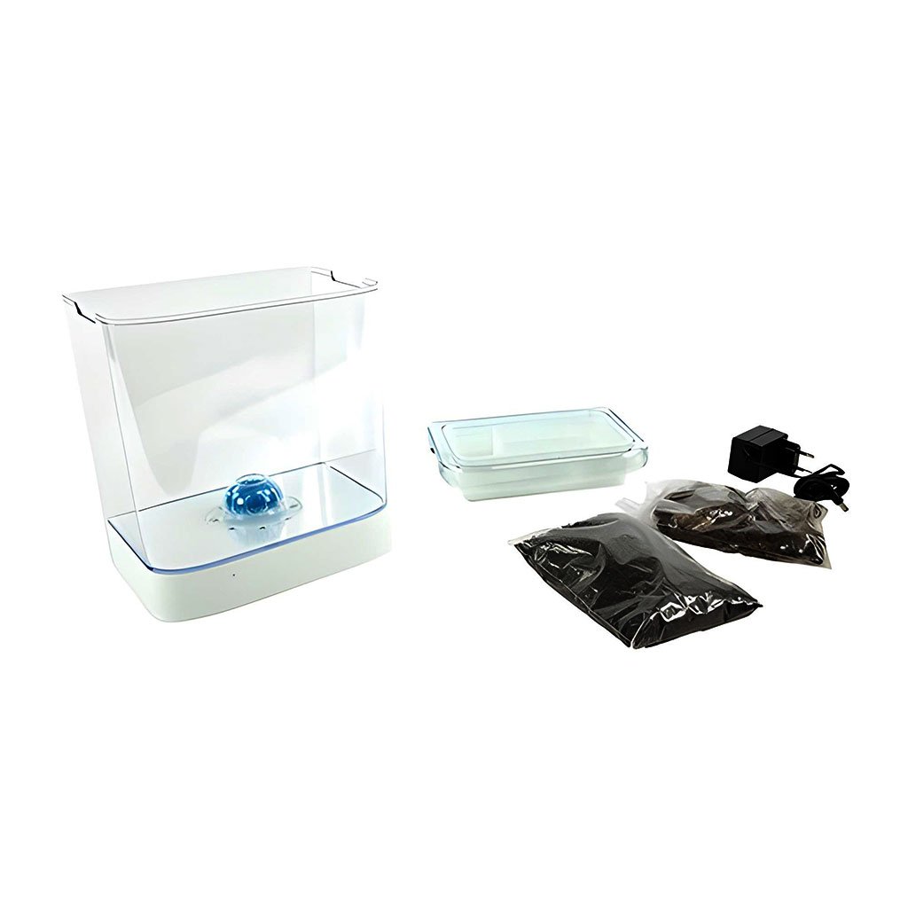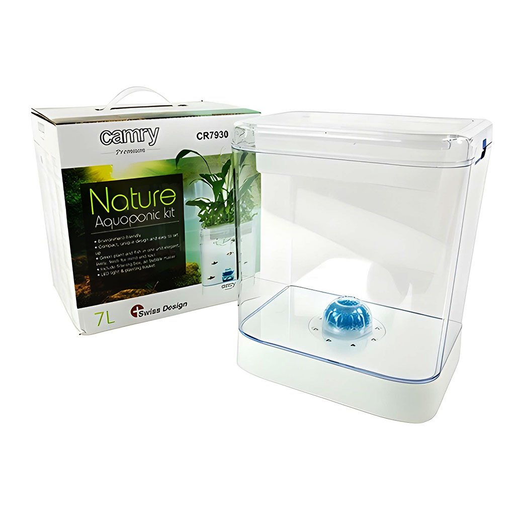 Ce kit aquarium est une pièce maîtresse unique pour ceux qui apprécient l’alliance de l’esthétique et de la fonctionnalité. La partie inférieure comprend un aquarium pour petits poissons, équipé d’un aérateur et d’un filtre externe. Au-dessus de l’aquarium se trouve un panier de plantation rempli de gravier céramique. L’ensemble constitue un élément de décoration intérieure remarquable, et l’utilisation de l’espace généralement négligé au-dessus de l’aquarium est véritablement ingénieuse. Le kit est doté d’un rétroéclairage LED blanc pour une expérience visuelle encore plus immersive. kit aquaponique naturel 1. Panier de plantation 2. Boîte de filtrage 3. Bulle d’air 4. Lumière LED blanche 5. Base 6. Réservoir Plantes et poissons non inclus. Des billes en céramique sont incluses. Capacité : 7L Dimensions : 25x15x22cm.
