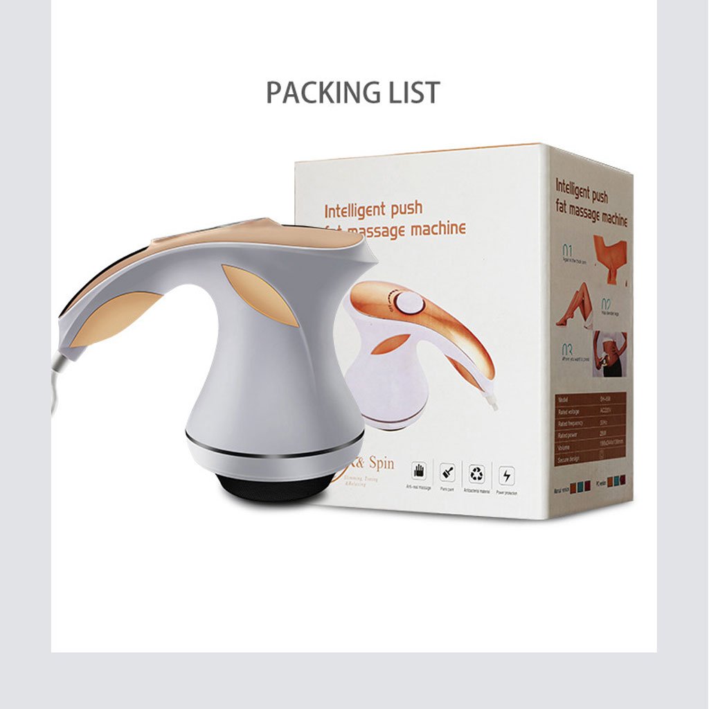 Masseur multifonction : change les tissus adiposés et élimine efficacement l’excès de graisse après une utilisation à long terme. En même temps, il aide à détendre les muscles, peut être utilisé sur tout le corps, soulager votre fatigue et favoriser la circulation sanguine. Démarrage à une touche : l’écran LCD vous permet d’utiliser la machine facilement. 5 modes et 6 niveaux de résistance. Le moteur puissant peut atteindre 3600 fois par minute Vous pouvez régler l’intensité des vibrations de ce masseur selon vos besoins. Différentes intensités ont des effets différents. Faible intensité de vibration consiste à resserrer la peau, l’intensité moyenne est d’éliminer l’accumulation locale de graisse et de graisse, et la haute intensité est le massage d’acupoint et des tissus profonds. Ajoutez plus d’accessoires : 8 têtes de massage ; la tête plate est adaptée pour tout le corps, massage de décompression du visage, de l’abdomen et du bras ; masse l’abdomen, les cuisses, les bras et d’autres parties avec une tête de massage d’huiles essentielles ; la tête de massage ondulées est utilisée pour le massage profond des tissus du cou, du dos, des épaules et de la taille ; tête de massage exfoliante, peau lisse ou polissage des pieds. La tête de massage thaï et 3 types de rouleau sont ajoutée pour vous donner plus d’expérience. Simple et pratique : il vous aide à faire des exercices, que ce soit à la maison, au bureau ou à la salle de sport. Il ne faut que 15 à 30 minutes par jour, facile à profiter, pas besoin d’exercice, facile de compléter la forme à la maison. Pour de meilleurs résultats, appliquez le gel, la crème ou l’huile essentielle sur la zone souhaitée avant utilisation. Il n’est pas recommandé de l’utiliser en continu dans la même zone pendant plus de 20 minutes. Utilisation sûre : utilisez un couvercle en maille propre pour couvrir et garder le masseur de masse grasse propre. Après utilisation, il suffit de l’essuyer avec une serviette. Le filet de protection peut empêcher les cheveux d’être serrés par la machine et assurer la sécurité des cheveux. Remarque : la housse en maille ne peut pas être utilisée avec la tête de massage de roue, la tête de rouleau d’angle, la tête de rouleau et la tête d’exfoliation.