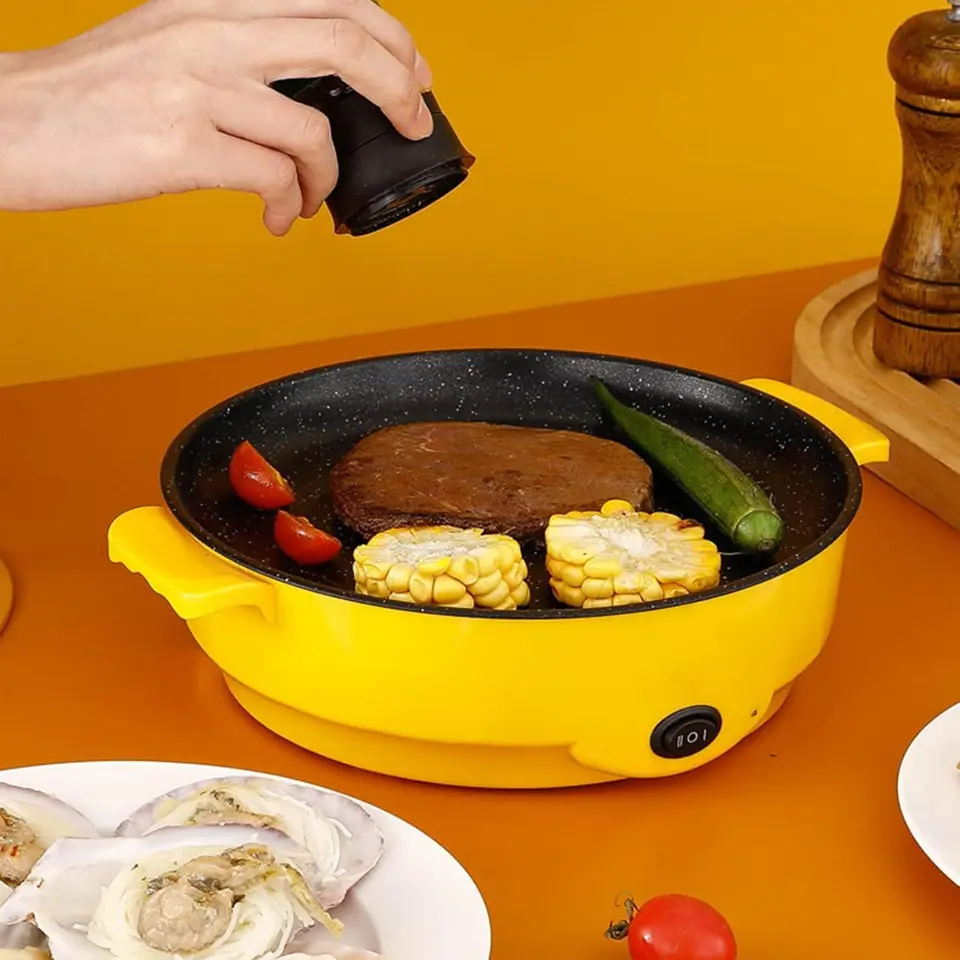 Design adorable : la poêle à griller électrique sur le thème du canard jaune ajoute une touche de gentillesse à votre cuisine Taille compacte : mini poêle à frire de 26 cm, parfaite pour les petits ménages et les dortoirs. Cuisson polyvalente : idéale pour le barbecue en intérieur et la cuisine quotidienne. Surface antiadhésive : assure un démoulage facile des aliments et un nettoyage simple. Alimentation électrique : pratique pour cuisiner sans tracas sans avoir besoin d’une cuisinière. Adapté aux dortoirs : sa conception compacte en fait un outil idéal pour les dortoirs et les espaces de cuisine limités. Indispensable pour la maison : un incontournable pour ceux qui aiment les repas rapides et créatifs à la maison.