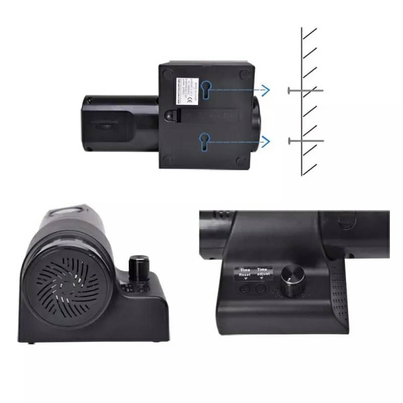 Caractéristiques du produit: 1.W Tout p Rojection Horloge 2. Classique Analogique Cadran d’horloge 3. FArtheth Distance de projection: 6 Mètres; Plus grand diamètre de projection: 2 Mètres 4.360-Degré de rotation 5. LOw température, Économie d’énergie, Durable 6.FRencontre parfaite avec le Différent Exigences des utilisateurs.Montage mural,Plafond-Monté, monté au sol Alimentation: ce produit utilise une alimentation 110V – 220V 7.Taille: 17(L) x 10(H) x 8.5 (L) cm EmballageComprend: 1 * horloge murale Led 4 * diapositives de couleur 1 * plaque d’immatriculation romaine 1 * plaque d’immatriculation arabe 1 * adaptateur de charge