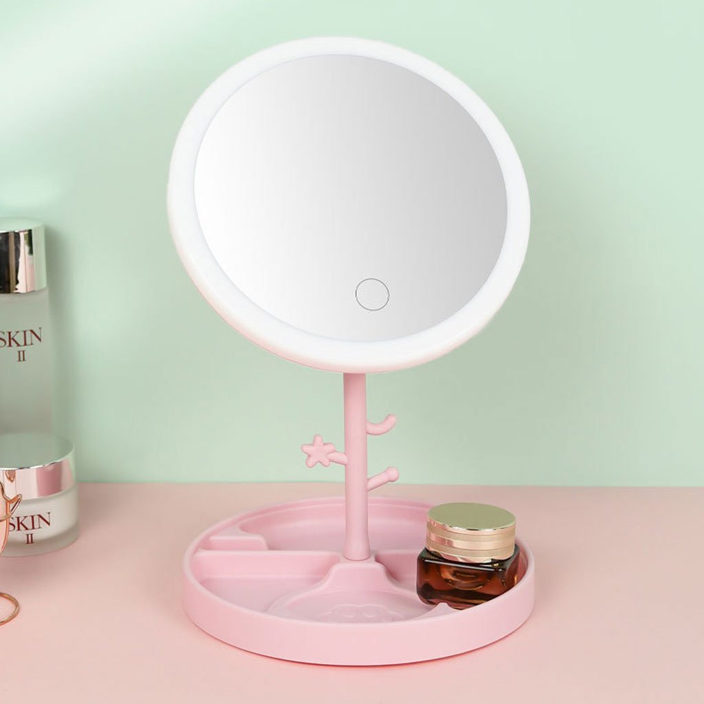 | مرآة تجميل دائرية قابلة لإعادة الشحن بإضاءة | 1 2000 د.ج |