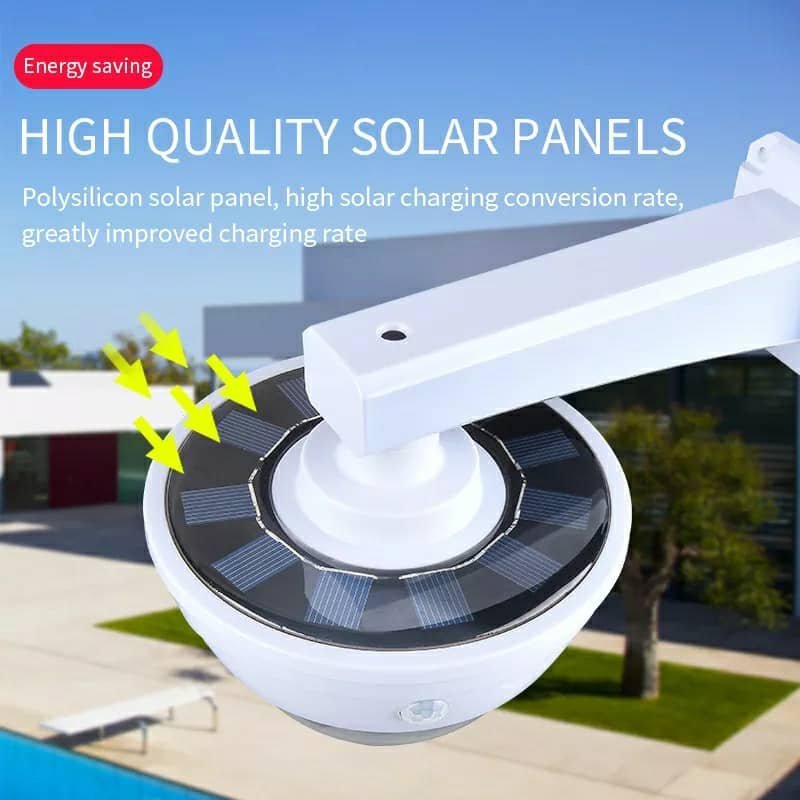 • الطاقة الشمسية: مزود بلوح شمسي يشحن البطاريات القابلة لإعادة الشحن (البطاريات مرفقة) نهارًا، ويتوقف عن العمل لتوفير الطاقة، ويعمل تلقائيًا عند حلول الظلام باستخدام الطاقة المخزنة.