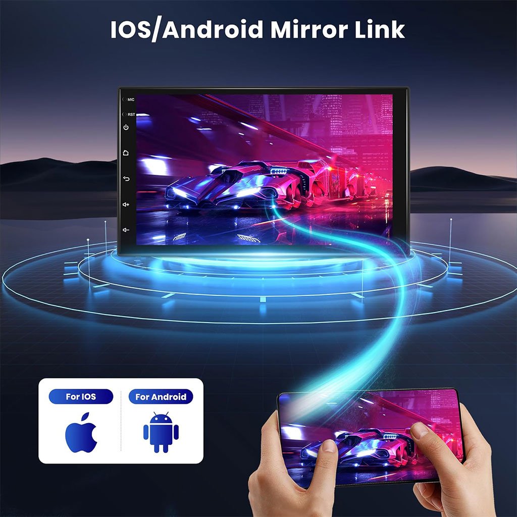 【7 Pouces Écran Tactile Autoradio 2 Din avec ISO Câble】Les dimensions d’installation de l’autoradio 2 DIN sont : 178 * 102 * 52 mm. Cet autoradio 2 din avec 7 pouces HD capacité écran tactile . Soutien microphone externe. Soutien écran partagé, deux pages peuvent être affichées simultanément, par exemple, la navigation et l’affichage de la musique en même temps. Autoradio avec câble d’alimentation ISO Port. L’autoradio supporte DAB+/OBD2/DVR. 【 Mirror Link】Autoradio avec écran supporte Mirror Link, via la ligne USB d’origine du téléphone ou WiFi. Une fois la connexion réussie, vous pouvez transférer l’écran de votre téléphone portable sur l’écran de l’autoradio. La navigation,le visionnage de vidéos,l’écoute de musique, etc. peuvent être réalisés via Mirror Link. 【Bluetooth & FM Radio 】Autoradio 2 din avec Bluetooth. Autoradio haut-parleur intégrés, peut passer des appels mains libres et se connecter en Bluetooth au téléphone portable pour écouter de la musique. Prise en charge de la radio FM, qui peut rechercher manuellement ou automatiquement le canal souhaité. 18 stations de radio préréglées. Les stations vous permettent d’écouter le trafic en temps réel, les informations, les prévisions météorologiques, etc. 【Caméra de Recul & Commandes au Volant】avec possibilité de l’installation et utilisation faciles, lorsque le véhicule passe en marche arrière, l’écran de l’autoradio affiche automatiquement l’image de la marche arrière et enregistre le trafic quotidiennement en marche arrière de manière plus sûre et plus pratique. Soutenez les commandes au volant, ainsi vous pouvez contrôler les fonctions dont vous avez besoin via le volant, ce qui est plus pratique. Dimensions: 17.5×10.5×6.5cm (7pouces)