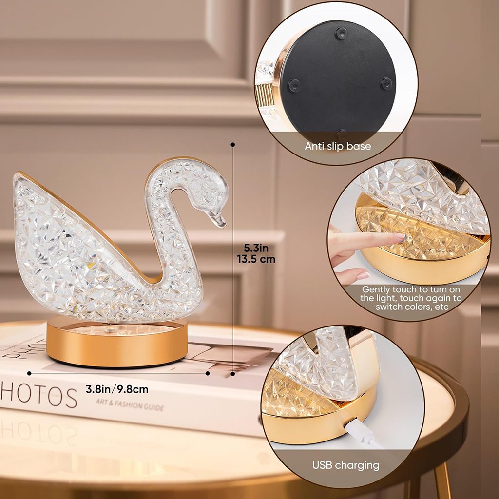 مصباح طاولة كريستالي وضوء ليلي مع إمكانية تعديل شدة