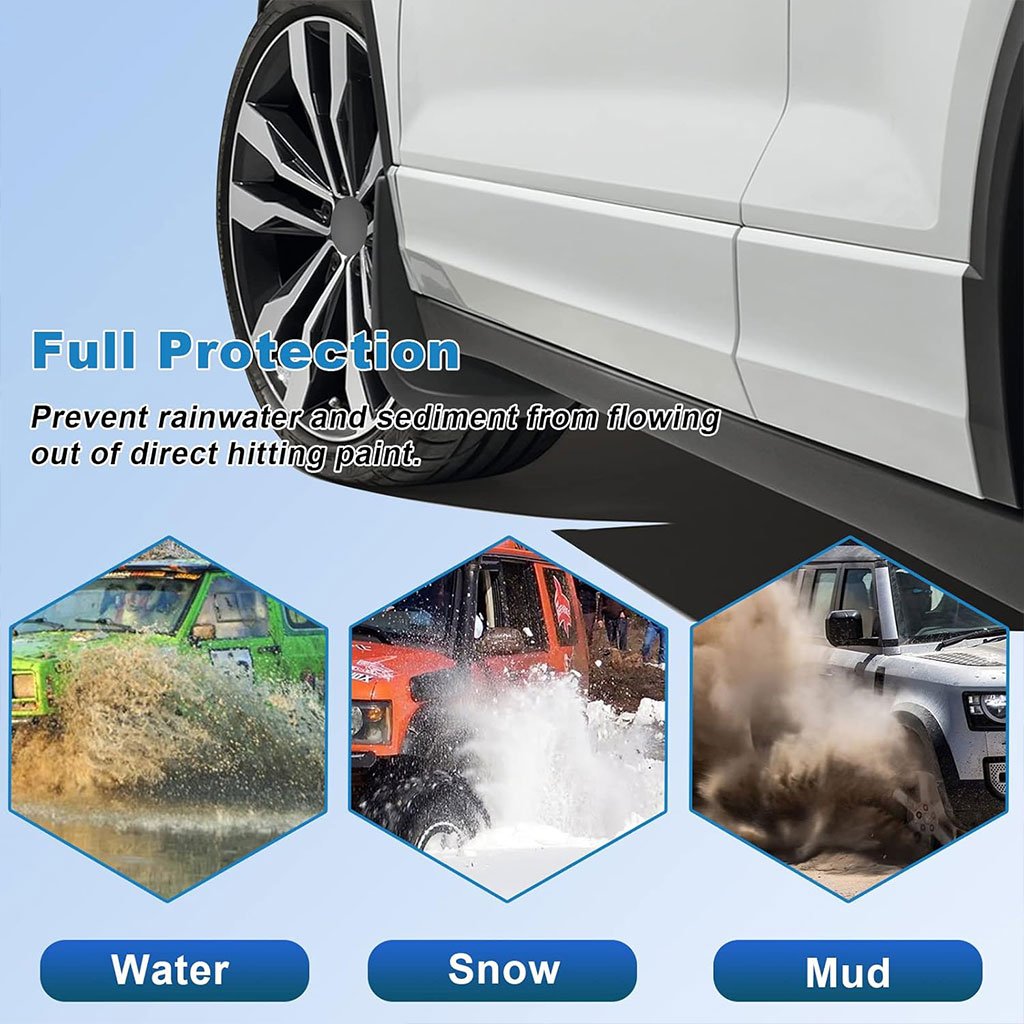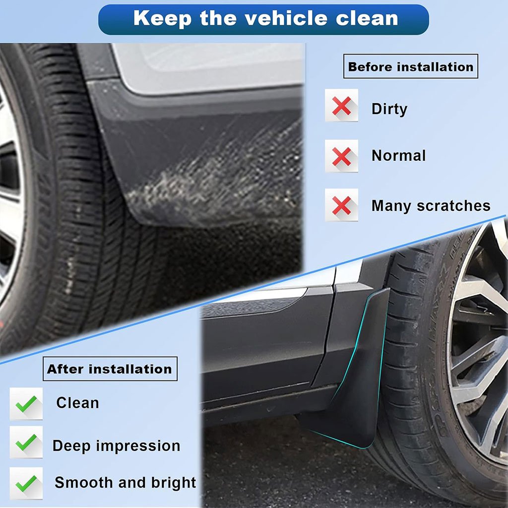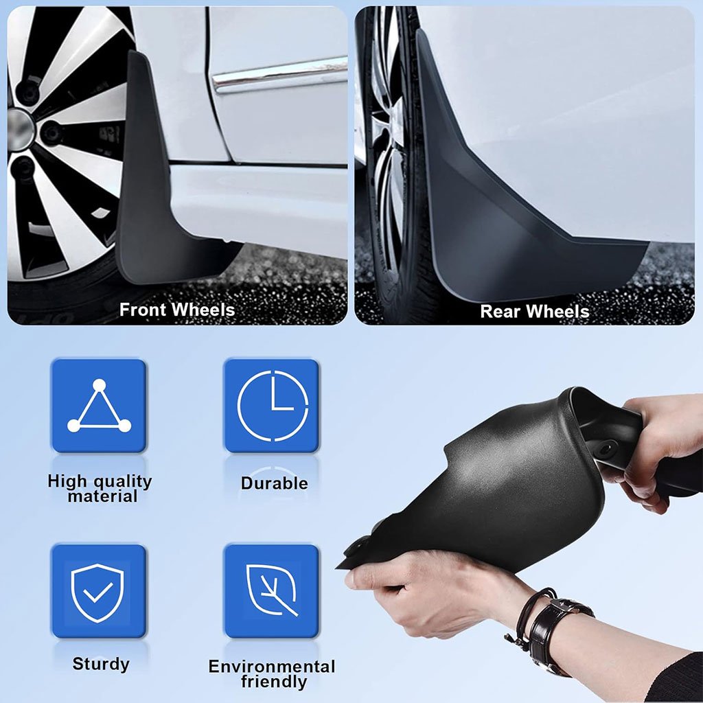 pour les 4 roues de votre voiture, pratique pour garder votre voiture et protéger les roues de la boue, des rayures, du sable et d’autres dommages extérieurs Utilisation de la fabrication d’acquisition de données laser, de la garde-boue et de l’intégration du véhicule, pratique et esthétique. Matériau, solide et pour durable, excellente flexibilité, pour une résistance pour durable et pour forte aux chocs. Installation non destructive, originale pour la position du trou.