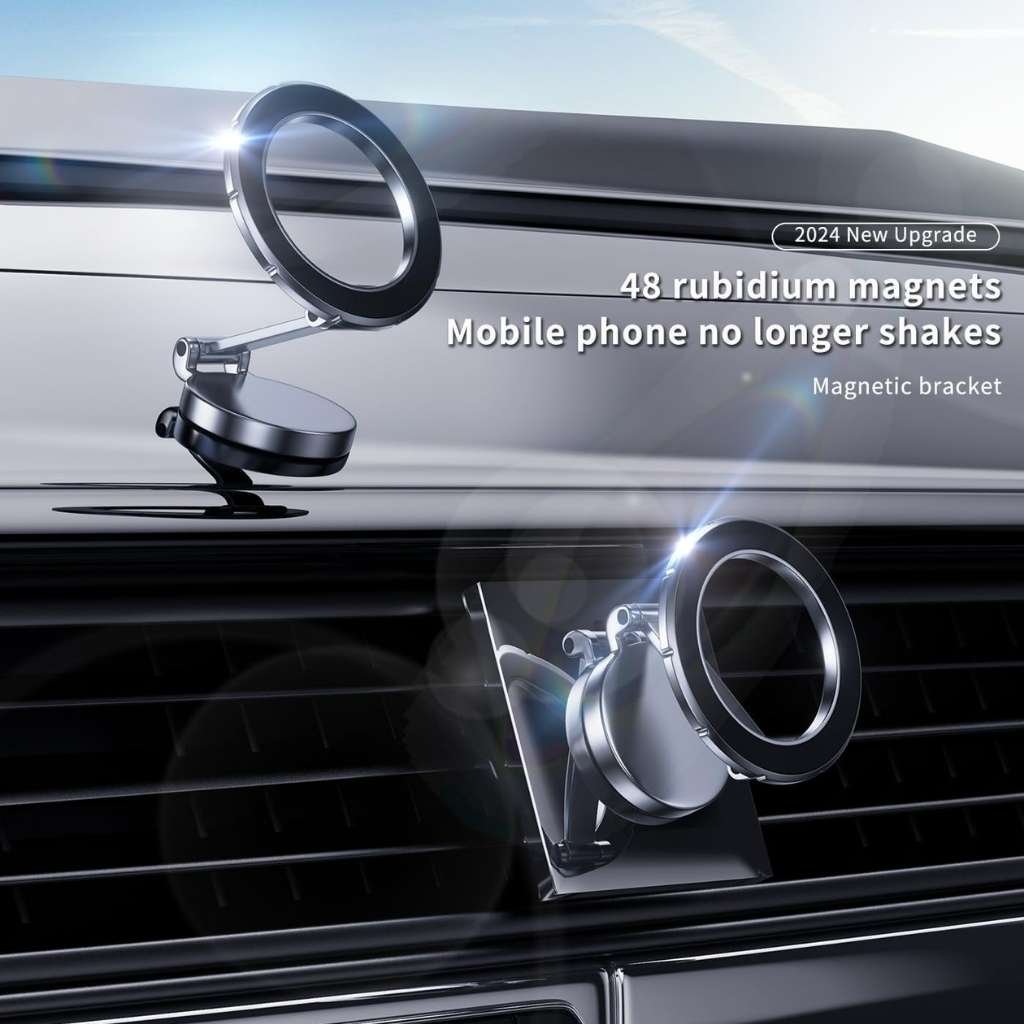 Compatibilité MagSafe : Conçu pour iPhone 15/14 Pro Max et autres appareils MagSafe. Rotation à 360° : Ajustement facile pour une visibilité optimale sous tous les angles. Aimants Ultra-Puissants : Maintien sécurisé, même sur routes accidentées. Design Pliable : Se replie discrètement pour un gain de place. Installation Simple : Fixation rapide et sans outil sur le tableau de bord.