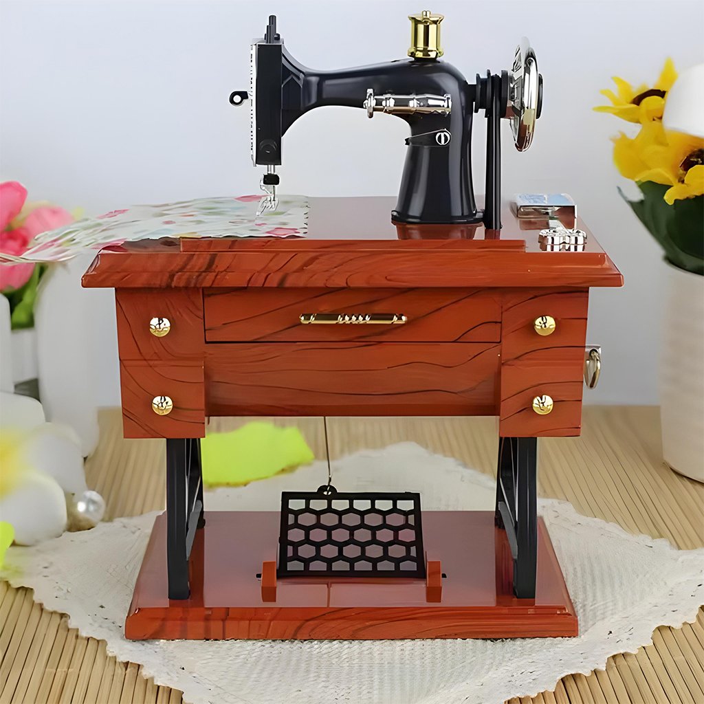 صندوق موسيقي على شكل ماكينة خياطة مصغرة