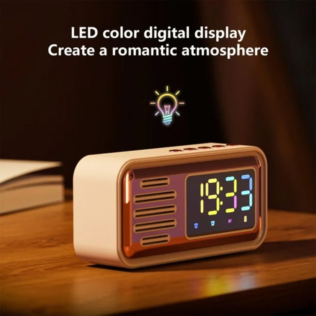 ساعة منبه بلوتوث بتصميم كلاسيكي مع مكبر صوت ووظيفة