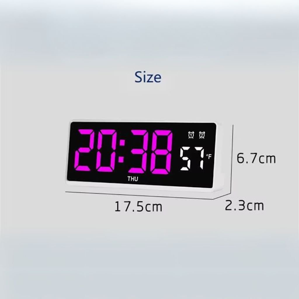 Description : Cette horloge numérique offre un grand écran LCD affichant simultanément l’heure, la date, la température et l’humidité, permettant une lecture facile et rapide des informations essentielles. Caractéristiques : Affichage multifonctionnel : heure, date, température et humidité. Grand écran LCD : assure une lisibilité optimale même de loin. Fonction alarme intégrée : idéale pour gérer vos routines quotidiennes. Design moderne : s’intègre parfaitement dans tout type d’intérieur. Pourquoi choisir cette horloge ? Cette horloge murale numérique multifonctionnelle est parfaite pour ceux qui souhaitent combiner fonctionnalité et esthétique. Son grand écran et ses multiples affichages en font un accessoire pratique pour la maison ou le bureau.