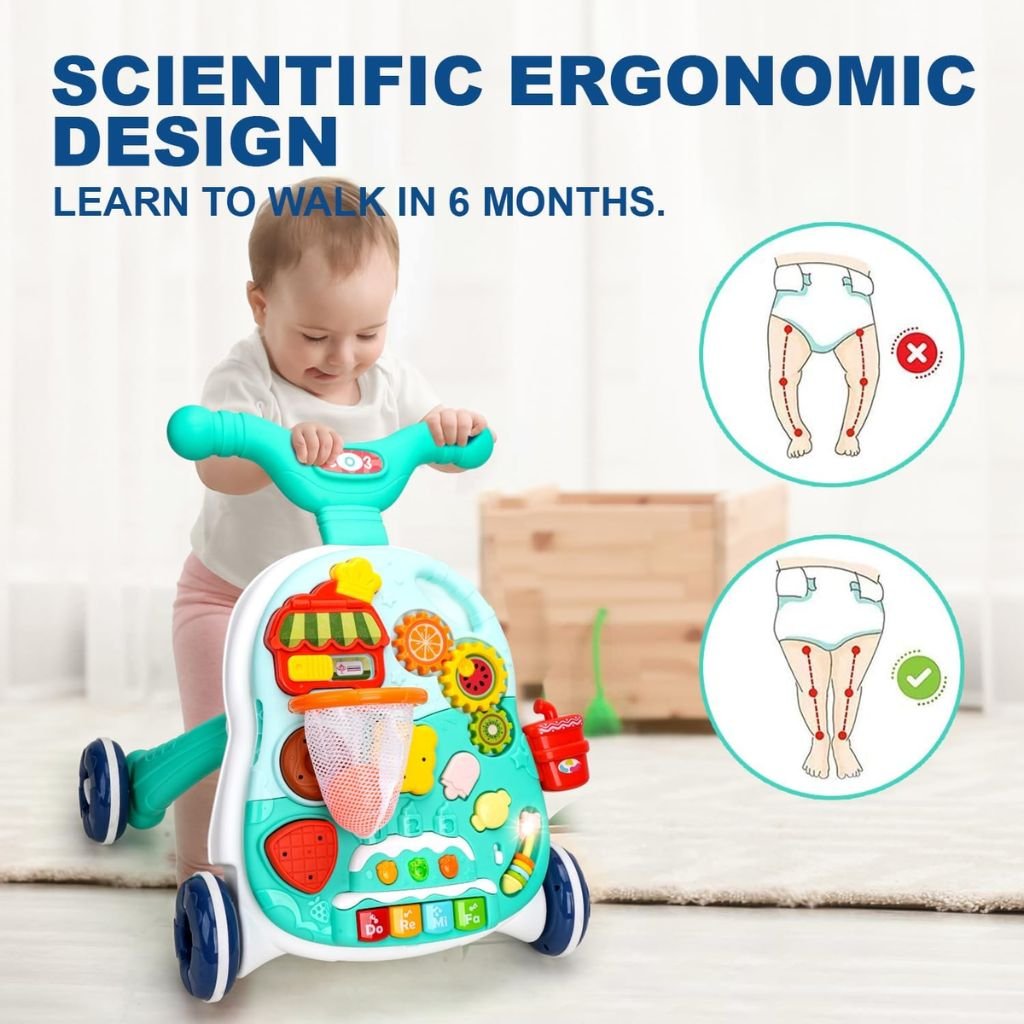 Design 4 en 1 : Ce trotteur évolutif accompagne votre bébé dans son développement, passant de la position assise à la marche, tout en offrant des activités ludiques. Panneau de Jeu Interactif : Équipé d’un tableau d’activités éducatives pour stimuler les sens et la motricité de votre enfant. Réglable en Hauteur : S’adapte à la croissance de votre bébé grâce à ses positions de hauteur ajustables. Sécurité Optimale : Doté de freins et de roues antidérapantes pour assurer une utilisation en toute sécurité. Facile à Ranger : Conception pliable pour un rangement et un transport aisés.