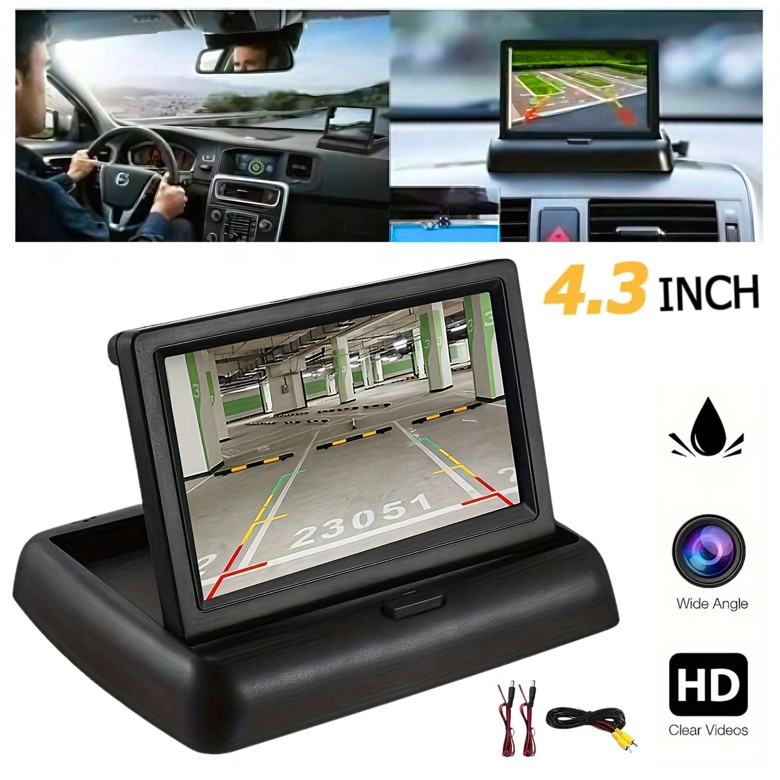 Écran LCD de 4,3 Pouces : Offre une résolution de 480×272 pixels pour une image claire et nette. Design Pliable et Motorisé : Se replie facilement lorsqu’il n’est pas utilisé, préservant l’espace et protégeant l’écran. Compatibilité Universelle : Fonctionne avec la plupart des systèmes de caméra de recul et autres sources vidéo. Installation Facile : Peut être monté sur le tableau de bord ou le toit du véhicule, selon les préférences. Contrôle de l’Image : Boutons de réglage pour la luminosité, le contraste et la saturation, permettant une personnalisation de l’affichage.