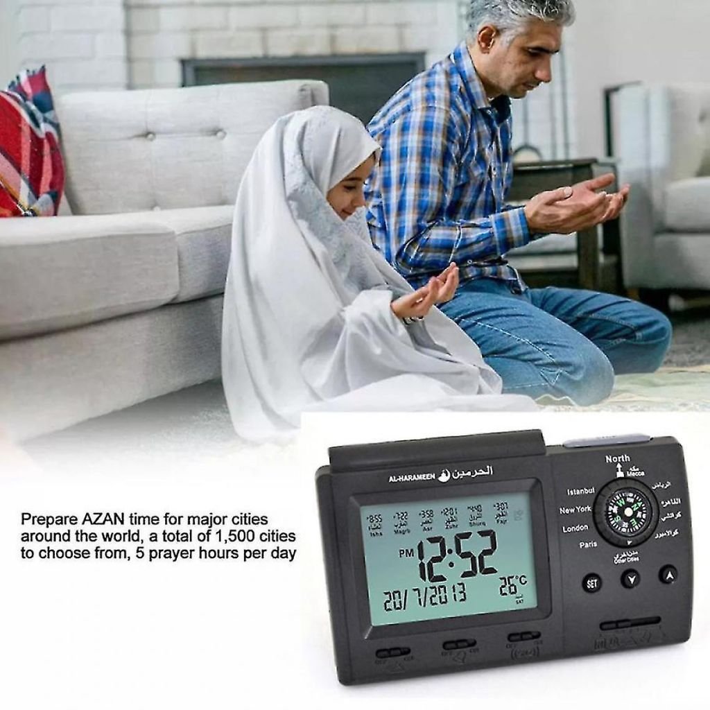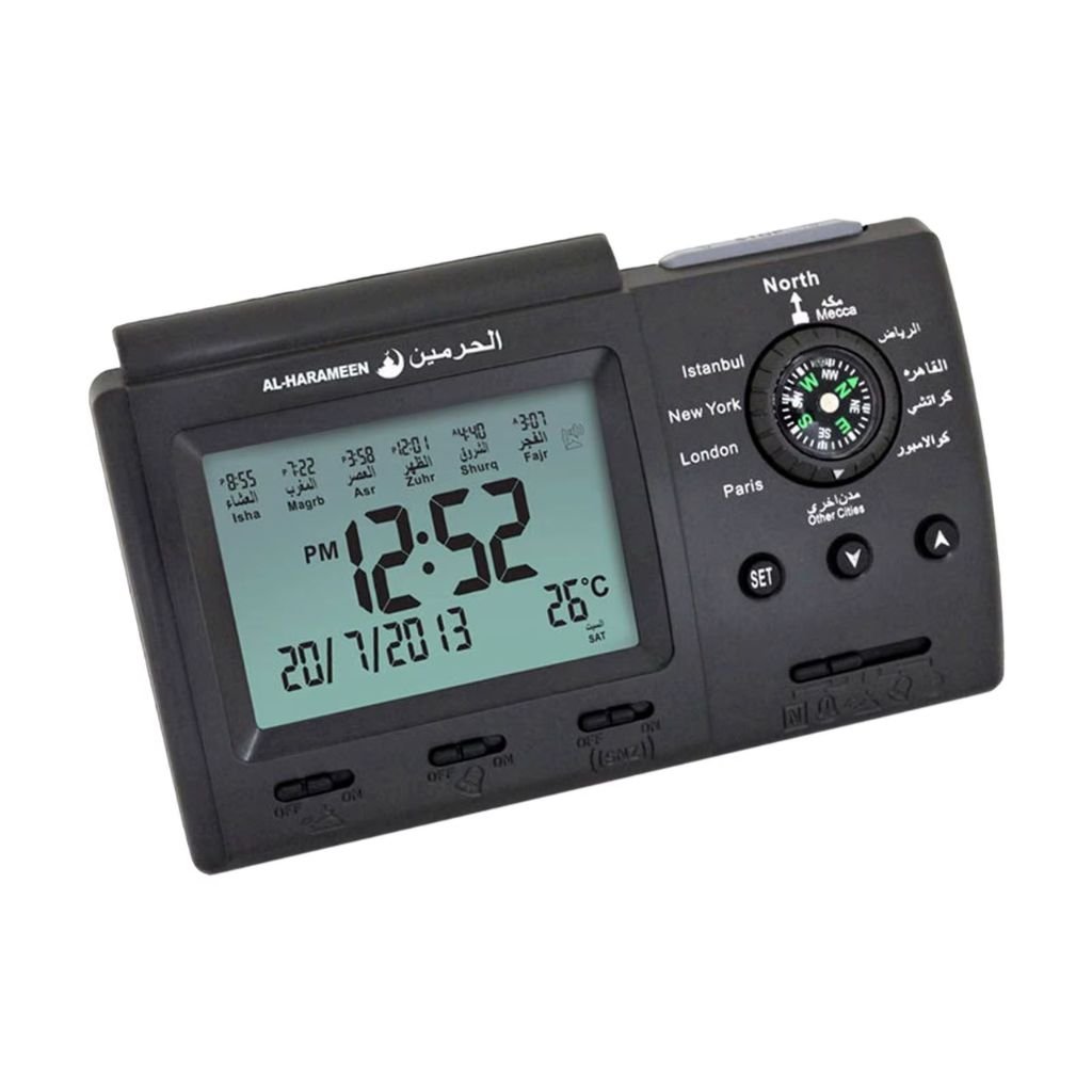L’horloge numérique islamique Al-Harameen HA-3005 est conçue pour aider les fidèles à accomplir leurs prières quotidiennes avec précision. Elle offre l’appel à la prière (Adhan) complet pour les cinq prières quotidiennes, avec un contrôle du volume pour s’adapter à vos préférences. Son écran numérique clair affiche l’heure, la date, la température, ainsi que le calendrier hégirien, facilitant ainsi la gestion du temps et des obligations religieuses. Caractéristiques Principales : Appel à la Prière Complet : Diffuse l’Adhan complet pour les cinq prières quotidiennes, avec possibilité de régler le volume selon vos besoins. Affichage Numérique Clair : Écran facile à lire affichant l’heure, la date, la température et le calendrier hégirien, offrant une vue d’ensemble complète. Réglage Simplifié de la Ville : Permet de sélectionner facilement votre ville pour des horaires de prière précis, grâce à une liste alphabétique ou un code de ville. Format d’Heure Personnalisable : Affiche l’heure au format 12 heures (AM/PM) ou 24 heures, selon votre préférence. Alarmes Indépendantes : Possibilité de définir des alarmes distinctes pour chaque prière, s’ajustant automatiquement aux horaires de l’Adhan. Calendrier Hégirien et Grégorien : Affichage alternatif des deux calendriers avec les jours de la semaine, pour une meilleure organisation. Alarme Quotidienne : Fonction d’alarme quotidienne réglable, avec option de sonnerie uniquement les jours ouvrables. Indicateur de Température : Affiche la température ambiante, avec choix entre Celsius et Fahrenheit.