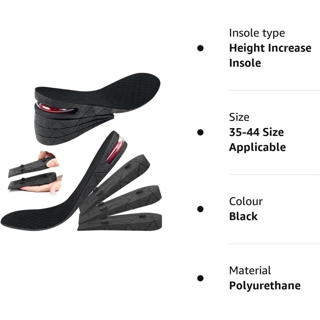 Ajustement Personnalisé : Ces semelles offrent une augmentation de hauteur modulable grâce à leurs 4 couches amovibles, permettant d’ajuster la hauteur selon vos préférences, jusqu’à 9 cm. Conception Confortable : Dotées d’un coussin d’air intégré, elles assurent une absorption efficace des chocs, réduisant la fatigue du pied lors de longues périodes de marche ou de station debout. Matériaux de Qualité : Fabriquées en PU et GEL, ces semelles combinent soutien, stabilité et amorti, tout en étant respirantes pour maintenir vos pieds au sec et confortables. Unisexe et Polyvalentes : Conçues pour s’adapter à la plupart des chaussures pour hommes et femmes, ces semelles sont idéales pour diverses occasions, qu’il s’agisse d’événements spéciaux ou d’une utilisation quotidienne. Améliorez votre stature et votre confiance en vous avec ces semelles rehaussantes réglables , alliant discrétion, confort et performance.