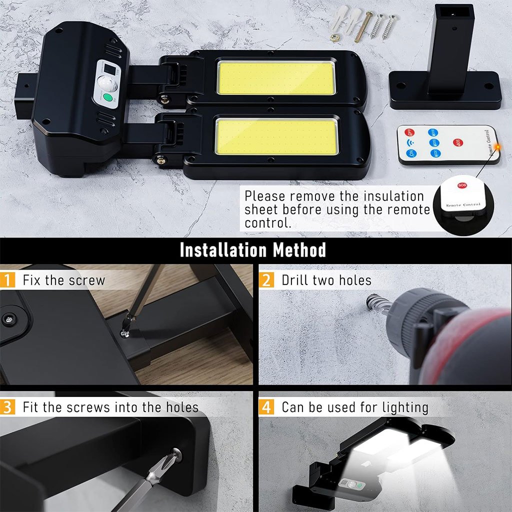 【Lampadaire super lumineux】 Les lampes solaires à mouvement extérieur sont fabriquées en ABS + PC à fort impact, équipées de 200 perles de lampe LED, à faible consommation d’énergie. Les appliques murales peuvent fournir un éclairage ultra-haute luminosité pour une grande surface. 【3 modes d’éclairage et télécommande】Mode 1 : allume automatiquement la haute luminosité lorsqu’un mouvement est détecté et devient une luminosité moyenne après 20 secondes.Mode 2 : allume automatiquement la haute luminosité lorsqu’un mouvement est détecté et s’éteint après 20 secondes.Mode 3 : éclairage constant dans l’obscurité.Vous pouvez également utiliser la télécommande pour régler le mode de votre choix. 【Tête d’éclairage réglable et éclairage grand angle】Les lampes solaires de stationnement peuvent être tournées de haut en bas à 90 °, à gauche et à droite à 180 °, une lumière peut être utilisée comme deux. Les appliques murales de sécurité peuvent être sensibles aux objets se déplaçant à moins de 240 °. 【Panneaux solaires étanches et efficaces IP65】Le lampadaire solaire a des performances d’étanchéité IP65 et peut être utilisé dans divers environnements extérieurs et conditions météorologiques extrêmes. Le lampadaire LED utilise des panneaux solaires en polysilicium, se chargeant pendant 6 à 8 heures et peut durer 8 à 10 heures. 【Service de vente et installation】Si vous avez des problèmes, veuillez nous contacter. Nous le traiterons dans les 24 heures. Les lampadaires sans fil peuvent être facilement installés et peuvent être montés directement sur le mur et le poteau avec les vis fournies.