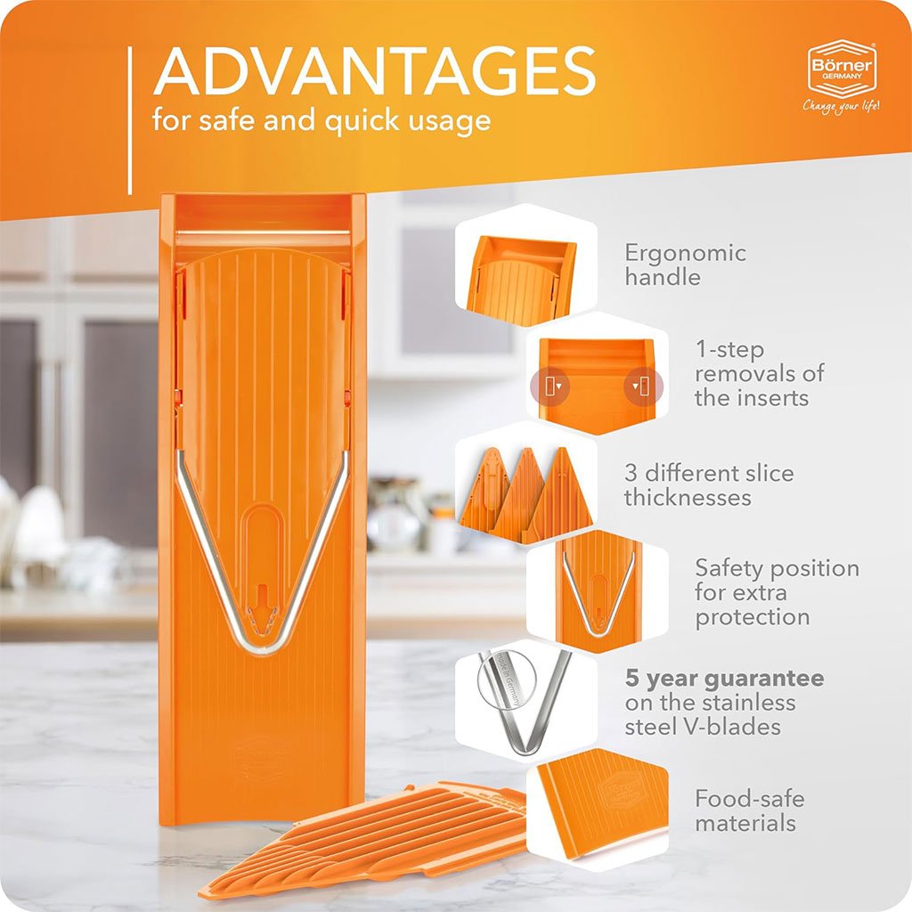 Polyvalence Culinaire : Conçue pour trancher, râper et émincer divers légumes tels que les pommes de terre, oignons, carottes et courgettes, offrant des coupes uniformes et professionnelles. Lames en Acier Inoxydable : Équipée de lames ultra-tranchantes et interchangeables permettant différentes épaisseurs de coupe, y compris en julienne. Sécurité Maximale : Dispose d’un protège-main ergonomique et d’une base antidérapante pour garantir une utilisation sans risque. Facilité d’Utilisation : Son design ergonomique et sa poignée confortable assurent une prise en main optimale pour un découpage rapide et efficace. Entretien Facile : Nettoyage simple à l’eau courante, avec des lames détachables pour un entretien rapide et hygiénique. Parfaite pour une préparation culinaire efficace et sans effort, cette trancheuse mandoline multifonctionnelle est l’outil idéal pour gagner du temps en cuisine tout en obtenant des résultats professionnels.