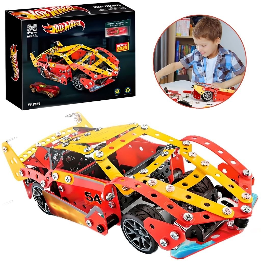 Nombre de Pièces – عدد القطع : Ce kit comprend 372 pièces métalliques, offrant une expérience de montage détaillée et engageante. Dimensions – الأبعاد : Les dimensions de l’emballage sont de 35 x 27 x 6,5 cm, avec un poids approximatif de 0,5 kg. Âge Recommandé – العمر الموصى به : Adapté aux enfants de 8 ans et plus, ainsi qu’aux adultes passionnés de modélisme. Marque – العلامة التجارية : Aucune marque spécifique n’est associée à ce produit. Série – السلسلة : Fait partie de la série “Hot Wheel”. Ce kit de construction métallique “Voiture de Sport” 8601 est idéal pour les amateurs de modélisme et les enfants souhaitant développer leurs compétences en assemblage et en ingénierie. Il offre une expérience enrichissante tout en stimulant la créativité et la dextérité manuelle.