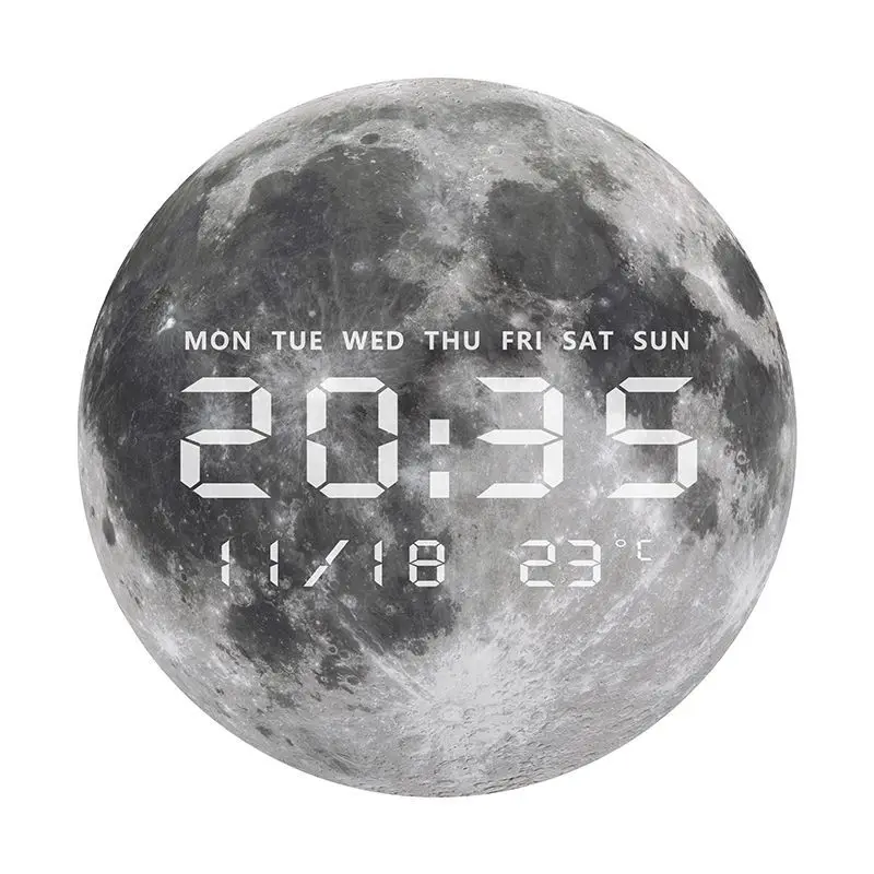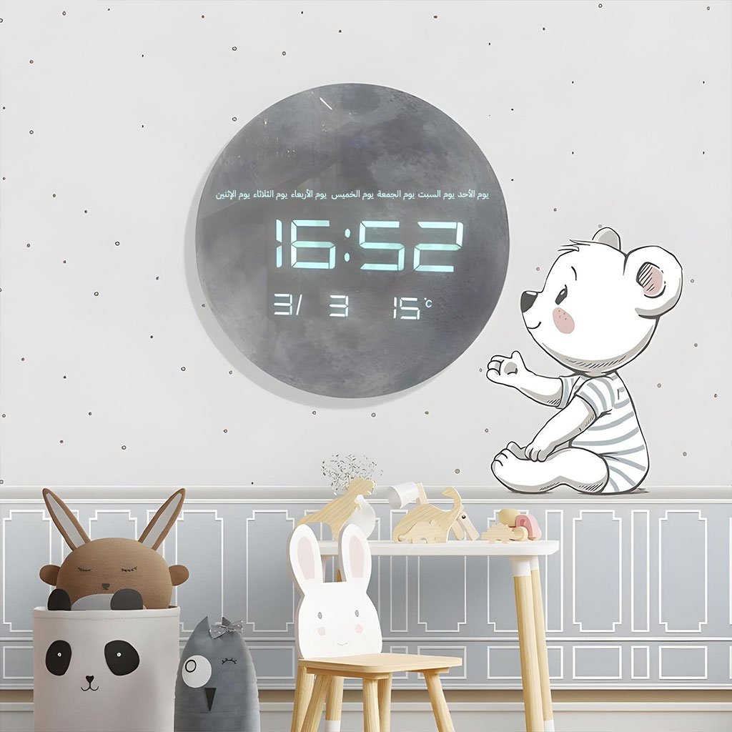 ساعة حائط رقمية مقاس 13 بوصة بتصميم قمر