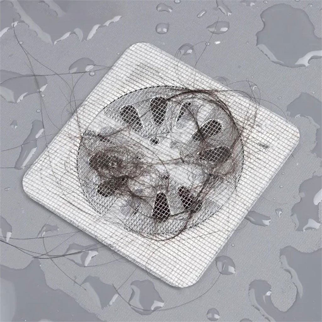 Absorption efficace des cheveux : le filtre jetable est la solution idéale pour éviter les obstructions capillaires. Sa maille fine retient efficacement les cheveux et les saletés et assure un écoulement fluide de l’eau dans votre canalisation. ÉCONOMIQUE ET RAPIDE Grâce à nos autocollants jetables pour canalisations, dites adieu aux canalisations bouchées sans réparations coûteuses ni entretien fastidieux. Une solution pratique et économique pour un écoulement fluide et sans problème. SUPPORT AUTO-ADHÉSIF RÉSISTANT Ces couvercles de drain jetables sont équipés d’un adhésif durable, ce filtre reste solidement en place autour du drain et empêche tout mouvement ou glissement pendant l’utilisation, assurant une protection fiable contre le colmatage S’ADAPTE AUX CANALISATIONS STANDARD. Adaptez votre autocollant récupérateur de cheveux à vos besoins en le découpant à la taille souhaitée. Idéal pour capturer les plus petites particules tout en maintenant un débit d’eau optimal. Pour une adhérence et une durabilité optimales, assurez-vous que la surface soit propre et sèche avant utilisation. INSTALLATION SIMPLE. L’installation est un jeu d’enfant : il suffit de décoller le film protecteur et d’appuyer fermement le filtre autour de la canalisation. Aucun outil ni expertise en plomberie requis. Il suffit de le jeter et de le remplacer une fois plein. Dimensions : 10x10cm