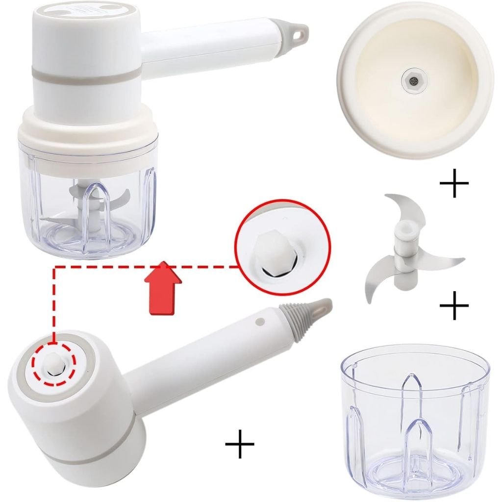 Appareil Multifonctionnel – جهاز متعدد الوظائف : Cet hachoir électrique sans fil est équipé de 6 têtes interchangeables, lui permettant de se transformer en lave-vaisselle, nettoyeur d’évier, essuie-four, hachoir à légumes et ail, ainsi que batteur à œufs et farine. Il constitue un outil de cuisine polyvalent, utile tant pour la préparation culinaire que pour le nettoyage. Trois Vitesses de Rotation – ثلاث سرعات دوران : Vous pouvez ajuster la puissance en appuyant sur l’interrupteur marche/arrêt, avec des vitesses de rotation de 200, 600 et 1000 tr/min. La vitesse basse est idéale pour hacher et mélanger, la vitesse moyenne convient au nettoyage de la vaisselle, et la vitesse élevée est parfaite pour le nettoyage de surfaces telles que la cuisine, le sol, les carreaux et les baignoires. Hachoir à Légumes – مفرمة خضروات : Livré avec un bol de 15 onces et une lame en acier inoxydable à trois lames, cet appareil hache rapidement des petits légumes comme l’ail, le gingembre, l’oignon et le poivron en morceaux ou en purée. Un petit accessoire est inclus pour cette fonction. Fonction de Lave-Vaisselle – وظيفة غسالة الصحون : L’appareil est fourni avec deux têtes différentes pour la vaisselle : une éponge et une brosse en nylon, offrant un nettoyage en profondeur pour les assiettes, casseroles, spatules et couteaux. Nettoyeur Polyvalent – منظف متعدد الاستخدامات : En plus des têtes d’éponge, une brosse de nettoyage est incluse, pratique pour le nettoyage domestique, notamment des éviers, sols, poêles, grilles, fours, moules à pâtisserie, ustensiles de cuisine, et même des baignoires et toilettes. Vous pouvez l’utiliser partout où vous en avez besoin. Simplifiez vos tâches culinaires et de nettoyage avec cet hachoir électrique sans fil 5-en-1, conçu pour offrir polyvalence et efficacité dans votre cuisine quotidienne.