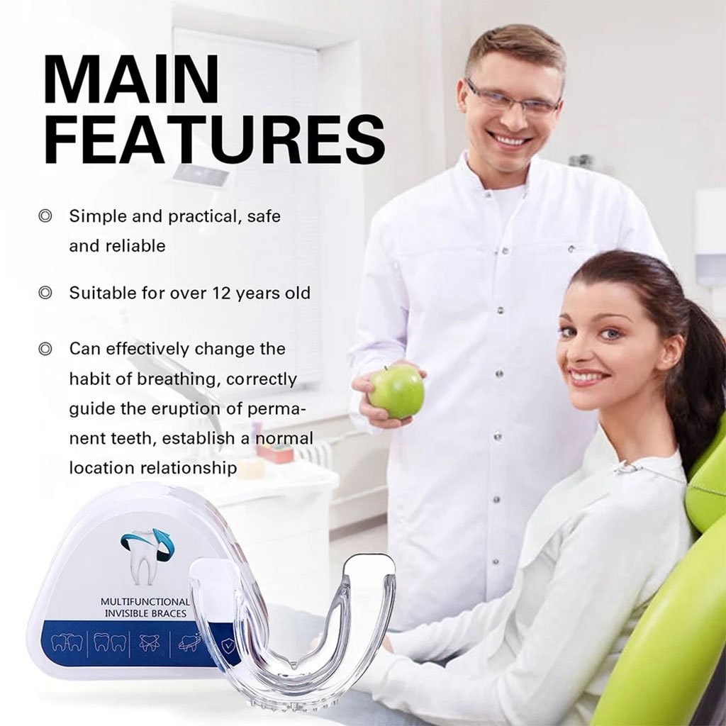 Aligne les dents Comble les espaces entre les dents Restructure votre mâchoire Positionne parfaitement la longue pour une bonne respiration. Remarques: Désinfectez ou lavez à l’eau tiède avant et après chaque utilisation. Laisser sécher et porter ou ranger. Tenir hors de portée des enfants pour éviter toute ingestion accidentelle. Modèle du produit Couleur : couleur naturelle Matériau : TPE de qualité alimentaire Bonus : étui de voyage inclus