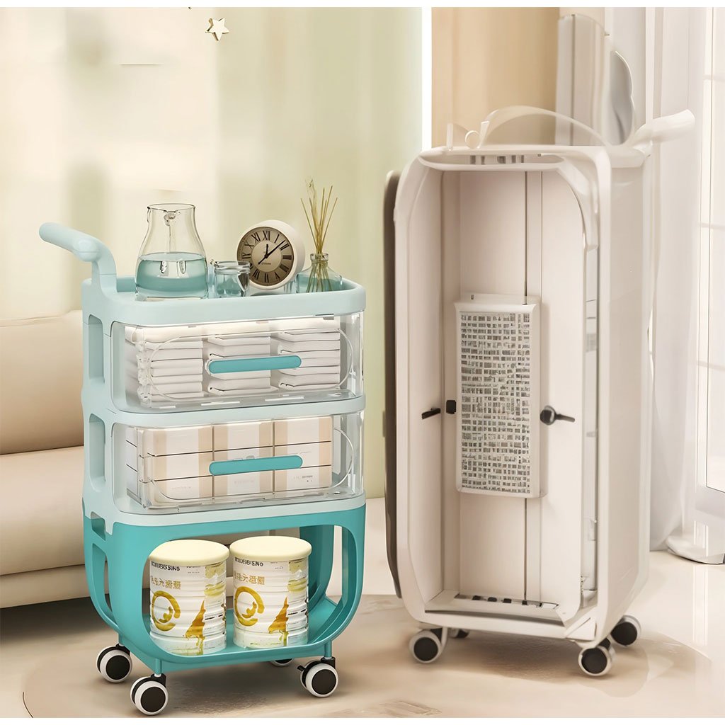 [Informations sur le produit] Nom du produit : chariot de rangement Matériau du produit : PP de qualité alimentaire Couleur du produit : beige, bleu Taille du produit : 3 niveaux : 33x44x74cm (Forte capacité de charge) La conception de la structure mécanique est robuste et durable sans déformation, offrant un support stable sans tomber. Forte capacité de charge, ne craint pas les fortes pressions, répond à vos besoins quotidiens de stockage de poids 【Poulie universelle】Faible bruit, lisse et facile à déplacer, pratique pour vous déplacer d’avant en arrière dans différents espaces Multifonctionnel : vous pouvez non seulement ranger les fournitures pour bébé, mais aussi les petits objets autour du salon ou de la table à manger. Utilisez-le comme chariot de cuisine pour ranger les condiments et les couverts ou pour ranger les produits de bain dans la salle de bain Assurance qualité : Si vous avez des questions ou des problèmes concernant le produit, veuillez nous contacter par e-mail. Nous offrons un excellent service et résoudrons tous les problèmes