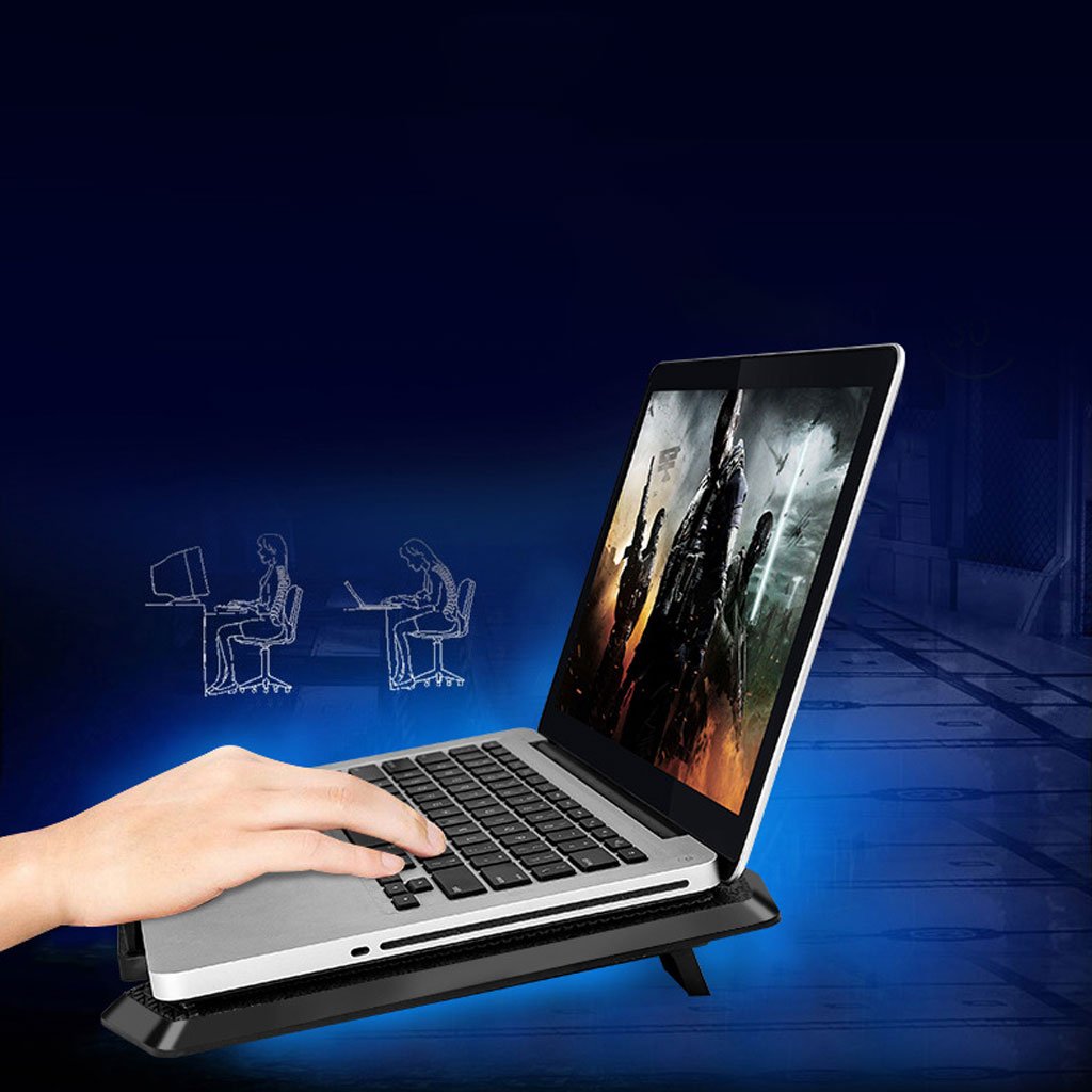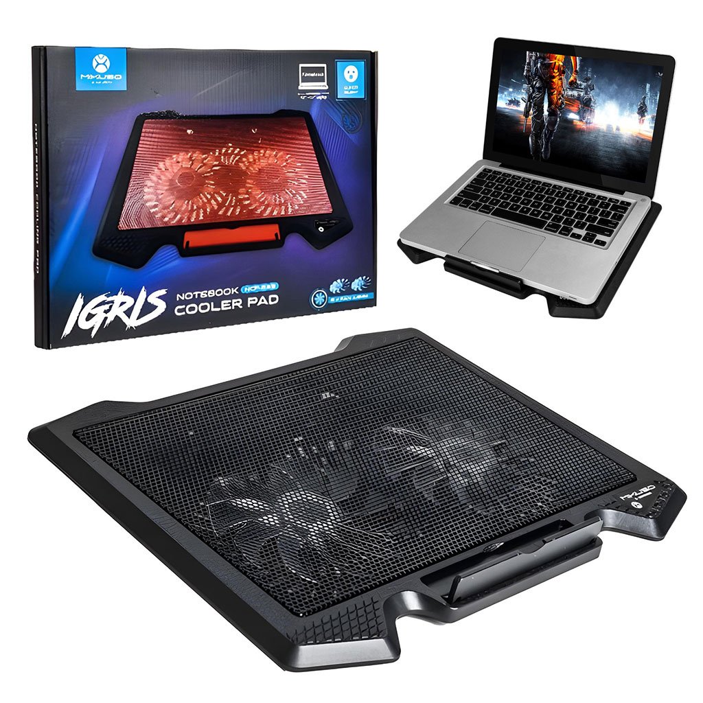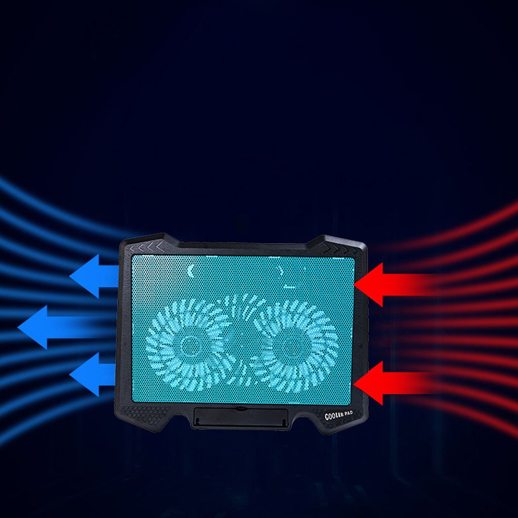 Convient aux ordinateurs portables de 10 à 17 pouces | Dimensions 36*28*2 cm | Nombre de ventilateurs : 2 (14 mm) | Vitesse du ventilateur 1000 tours par minute (RPM) | Tension de consommation électrique 5 volts | Consommation électrique 2,5 watts | Capacité de réglage de la hauteur | Conception silencieuse |