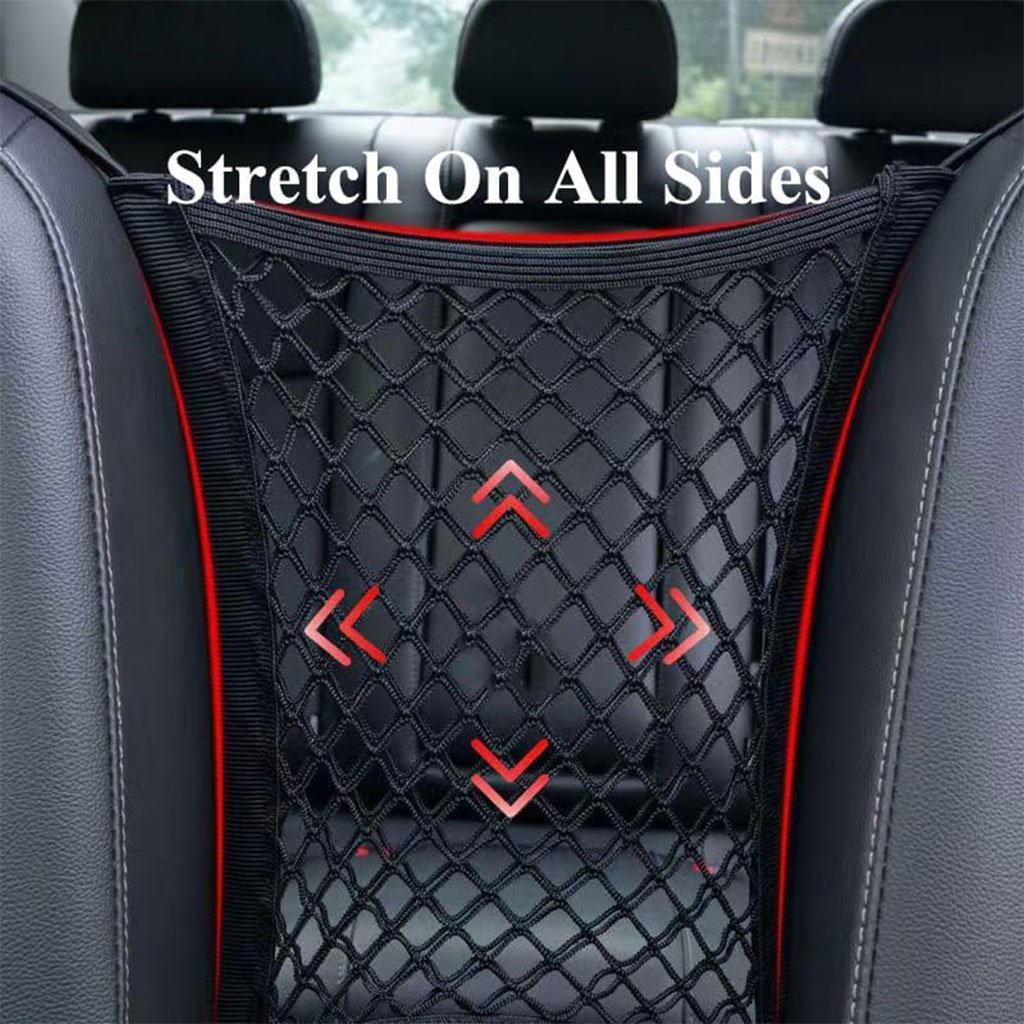 Organisateur de siège de voiture solide : cet organisateur de voiture a adopté une fibre de polyester épaissie avec une forte flexibilité, il peut s’étirer jusqu’à la taille parfaite en fonction de l’espace différent entre les sièges conducteur et copilote de divers modèles de voiture. Aide au rangement de la voiture : ce filet de rangement vous permet d’organiser et de classer vos affaires, comme la nourriture, les bouteilles, le spray nettoyant, le chiffon, etc. Ces objets ne risquent pas de se déplacer, même en mouvement. Forte durabilité : le crochet solide de la corde élastique est difficile à déformer. La housse de protection élastique ne blessera pas votre chien. Évitez la distraction au volant et empêchez les animaux de compagnie de sauter brusquement sur le siège avant et de gêner le conducteur. Votre conduite est ainsi plus sûre. Installation pratique : aucun perçage ni autocollant requis, équipé de 4 crochets de sécurité fiables qui permettent de connecter facilement l’ensemble du filet de rangement au poteau de l’appui-tête en 1 minute, ce qui permet d’économiser du temps et des efforts. Forte praticabilité : la taille du filet de rangement pour voiture est de 11,4 pouces x 10 pouces/30 cm x 25 cm, ce qui prend peu de place, mais offre néanmoins des capacités d’organisation suffisantes pour répondre à vos besoins quotidiens.