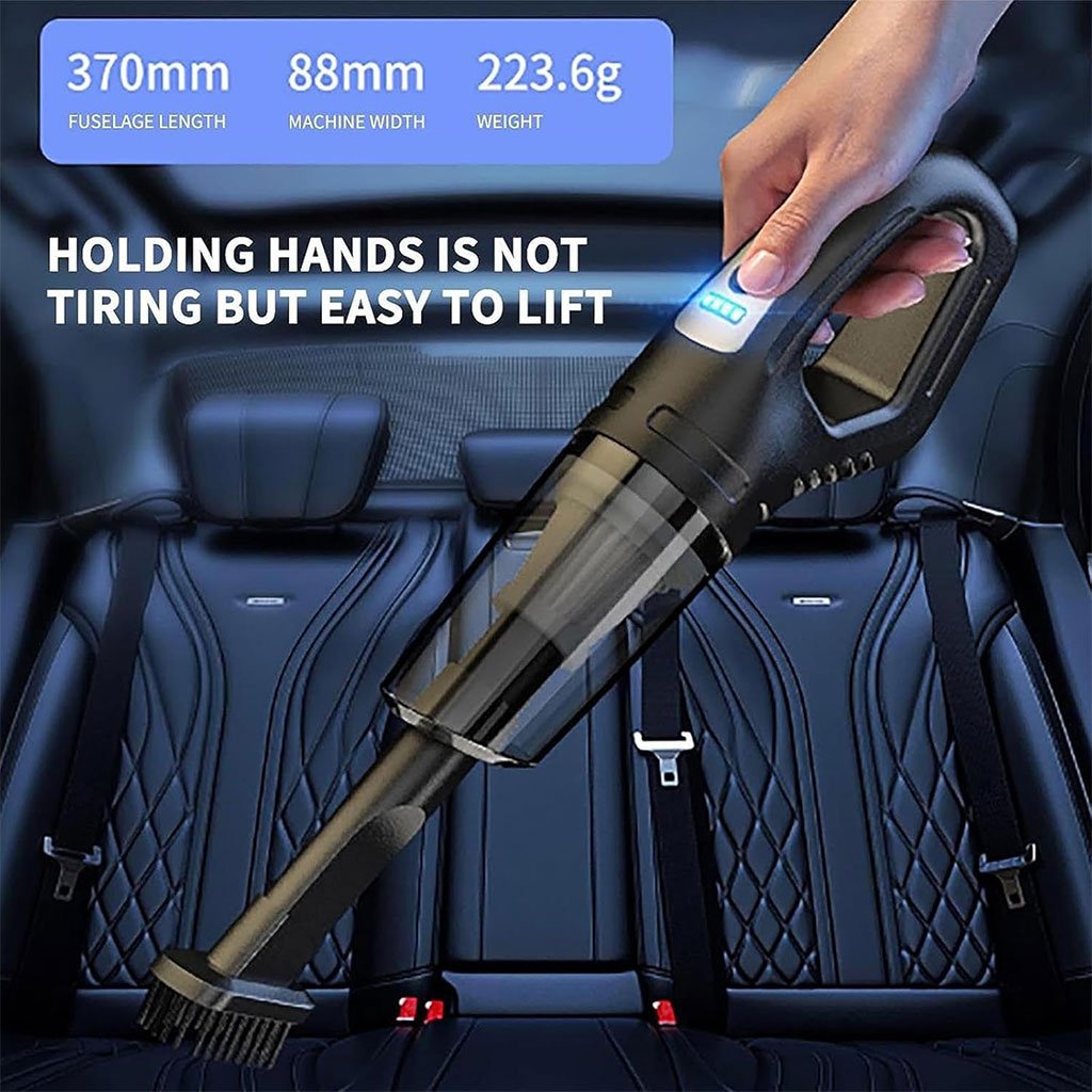 Aspiration puissante : avec un moteur haute puissance et une puissance durable, cet aspirateur peut nettoyer efficacement une variété de zones de votre voiture, des sièges aux tapis de sol, et garder votre voiture fraîche et bien rangée. Batterie de grande capacité : rechargez votre appareil à la maison ou en déplacement grâce aux options de charge polyvalentes fournies et bénéficiez jusqu’à 30 minutes de temps de nettoyage ininterrompu grâce à la batterie de grande capacité. Large application : Dites adieu à la saleté et à la poussière de votre voiture ! Ce mini aspirateur multifonction est livré avec divers accessoires, adaptés à différents types de nettoyage, comme les sièges, les tapis et les vitres. Filtre durable : Notre aspirateur pour voiture est doté d’un filtre lavable et réutilisable pour un entretien facile. Une filtration améliorée assure une propreté optimale et un intérieur de voiture plus sain. Taille légère : Facile à ranger et à transporter, cet aspirateur pour voiture est idéal pour le nettoyage en déplacement. Sa portabilité et sa légèreté facilitent le nettoyage de l’intérieur de la voiture et des espaces restreints.