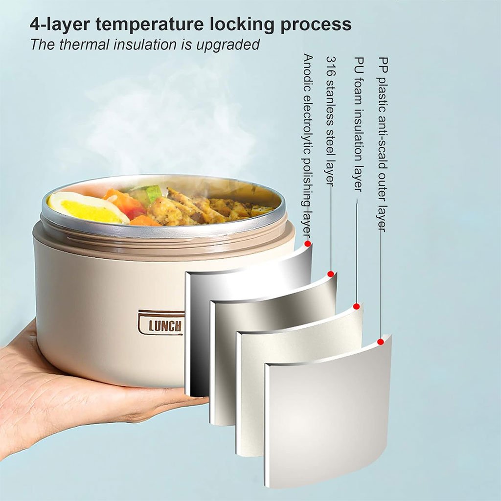 Matériau de qualité alimentaire supérieure : les bocaux thermos alimentaires sont fabriqués en acier inoxydable 304 de qualité alimentaire. Le plastique des récipients intérieurs et du couvercle sont durables et sains. Sans BPA, sans PVC, non toxique. Temps d’isolation plus long : le thermos alimentaire pour aliments chauds dispose d’une technologie de couche de mousse récemment améliorée et d’une technologie de soudure sans couture. Les boîtes à déjeuner thermiques séparées vous permettent d’emballer différents types d’aliments, de garder les aliments chauds ou froids jusqu’à 6 heures. Multifonction : nos boîtes à déjeuner répondent à tous vos besoins de stockage. Idéal pour la maison, le camping, les pique-niques ou tout repas en plein air, et plus encore. Étanche et facile à ouvrir : les boîtes à déjeuner intérieures sont livrées avec un anneau d’étanchéité en silicone, ont été entièrement scellées pour éviter les accidents de déversement. Gardez vos repas faits maison chauds et frais. 100 % étanche. Le design de libération de pression d’air le rend facile à ouvrir. Contenu : 4 boîtes à déjeuner isothermes : 2 pièces de 620 ml, 2 pièces de 440 ml , un sac isotherme.