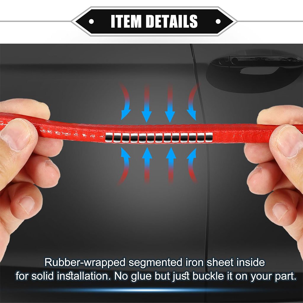 Ajustement universel – Bande de protection de bord de porte de voiture universelle pour la plupart des voitures, camions, VUS, camping-cars, VTT, UTV et bateaux, bande de protection de bord de porte durable. Avantages uniques : la bande de protection pour portière de voiture protège des rayures et des arêtes, apporte une touche sportive à votre voiture et se plie et se découpe facilement selon vos besoins. En forme de U, aucun adhésif n’est nécessaire, il suffit de la fixer à votre convenance. Caractéristiques spéciales : La bande de protection pour portière de voiture est fabriquée en PVC et en fer de haute qualité. Longueur : 5 m ; largeur : 10 mm ; épaisseur : 7 mm. Bonne résistance aux températures élevées et basses. Installation facile : la bande de protection pour portière de voiture s’installe rapidement et facilement. 1. Nettoyez le bord à protéger. 2. Bouclez et pressez le joint en caoutchouc le long du bord. Aucune colle n’est nécessaire. 3. Découpez l’excédent pour la finition. Contenu de l’emballage – L’emballage comprend 1 bande de protection de bord de porte de voiture.