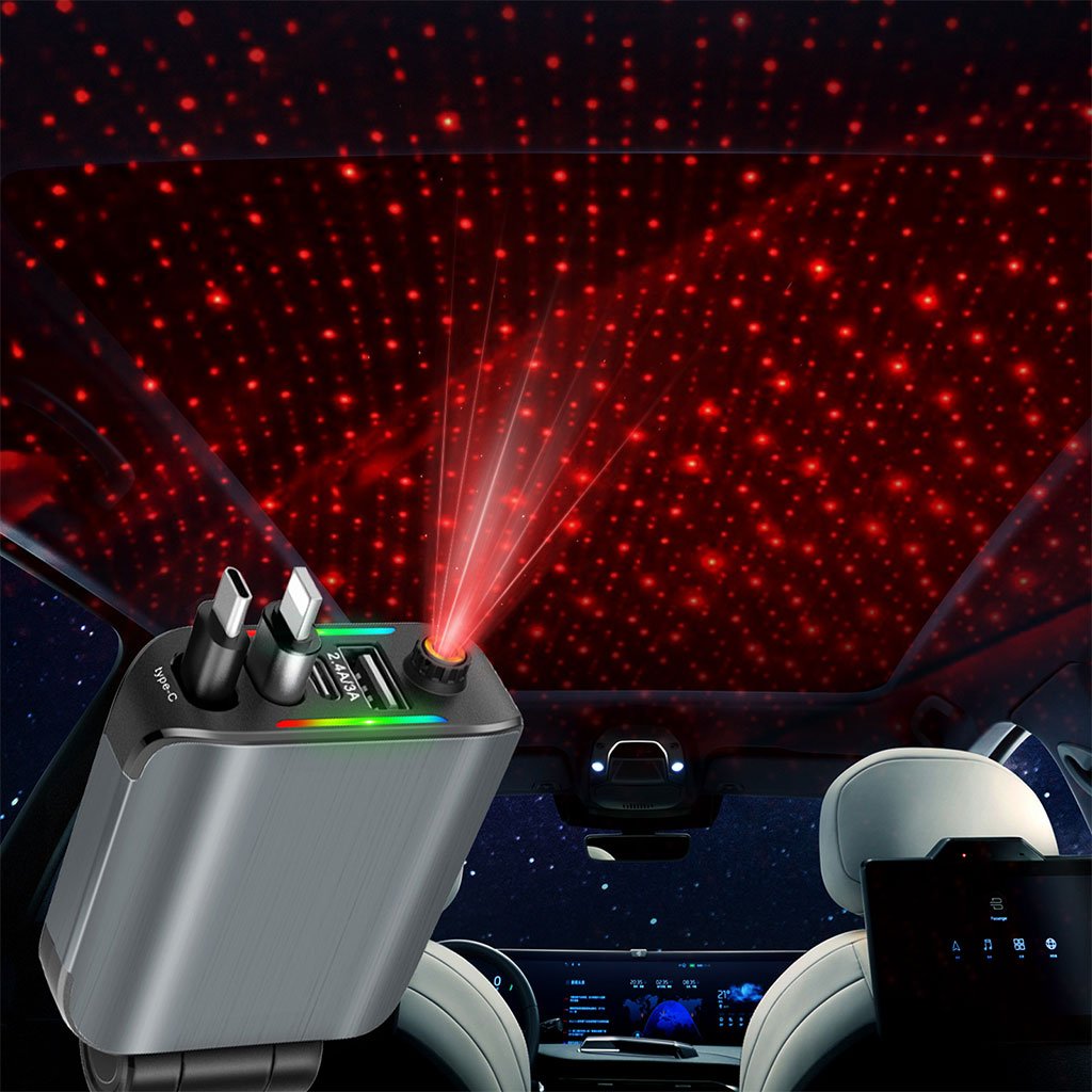 Compatible Avec Plusieurs Appareils : Ofottofo chargeur rapide voiture peut charger une variété d’appareils électroniques rapidement et efficacement. Le chargeur rétractable est compatible avec divers appareils électroniques tels que l’iPhone 15 14 13 12 Plus/ Pro/ Pro Max, Samsung Galaxy, Google Pixel, Huawei, Xiaomi et tous les smartphones, iPads, tablettes, appareils photo et tous les appareils alimentés par USB. Chargeur Allume Ci-gare 4 en 1 : le chargeur USB C voiture prend en charge le chargement de 4 appareils électroniques en même temps, avec une puissance de sortie maximale de 120W, et fournit PD30W et QC3.0 pour répondre aux besoins de super charge. Chargeur téléphone voiture convient aux véhicules courants tels que 12V-24V. Sécurité et protections multiples : les chargeurs de téléphone portable pour automobile sont fabriqués en aluminium + matériau ABS, qui est non seulement solide et durable, mais peut également dissiper efficacement la chaleur. Une puce intelligente intégrée assure une protection complète, y compris contre les surintensités, les courts-circuits et la surchauffe. Dispositif de sécurité : le chargeur de voiture ne fournit de l’électricité que lorsque le moteur tourne. Câble Rétractable Voiture : Chargeur voiture retractable offre 2 câbles rétractables d’une longueur maximale de 80 cm chacun. Tirez simplement le câble deux fois ou jusqu’au bout pour qu’il se rétracte automatiquement, évitant ainsi les enchevêtrements et gardant votre voiture propre et ordonnée. La prise voiture peut pivoter à 180 degrés, rendant la charge plus pratique. Gadget Voiture Créateur D’ambiance : À la tombée de la nuit, les lumières dansent au rythme de la musique. Qu’il s’agisse d’un rendez-vous romantique, d’une réunion entre amis ou d’une sortie en famille, vous pouvez créer une ambiance exclusive en un seul clic. le chargeur de voiture propose deux modes d’éclairage via des interrupteurs tactiles : lumière de projection de ciel étoilé et lumière ambiante colorée.