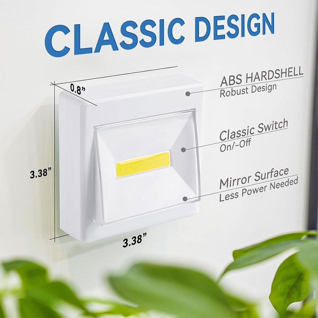SUPER LUMINOSITÉ : Chaque éclairage de placard est équipé d’une bande LED COB de haute qualité. Puissance de 200 lumens, offre une protection lumineuse fiable et adéquate la nuit ou dans les endroits sombres LUMIÈRE SANS FIL : Les lumières fonctionnant sur piles sont excellentes, elles ne nécessitent aucun fil et sont alimentées par 3 piles AAA (non incluses). Vous n’avez pas à vous soucier des problèmes électriques lorsqu’il est installé dans la chambre des enfants. Facile à installer : la lumière du robinet utilise un tampon adhésif double face, vous n’avez pas à vous soucier de sa chute après le collage. La lampe à batterie est également équipée d’une vis. Convient à une variété de scènes Largement applicable : une luminosité suffisante convient à de nombreux endroits. Par exemple : armoire de cuisine/placard/penderie ; lessive; sous l’armoire; tiroir; chambre à coucher; abri extérieur; garage; camp; etc.