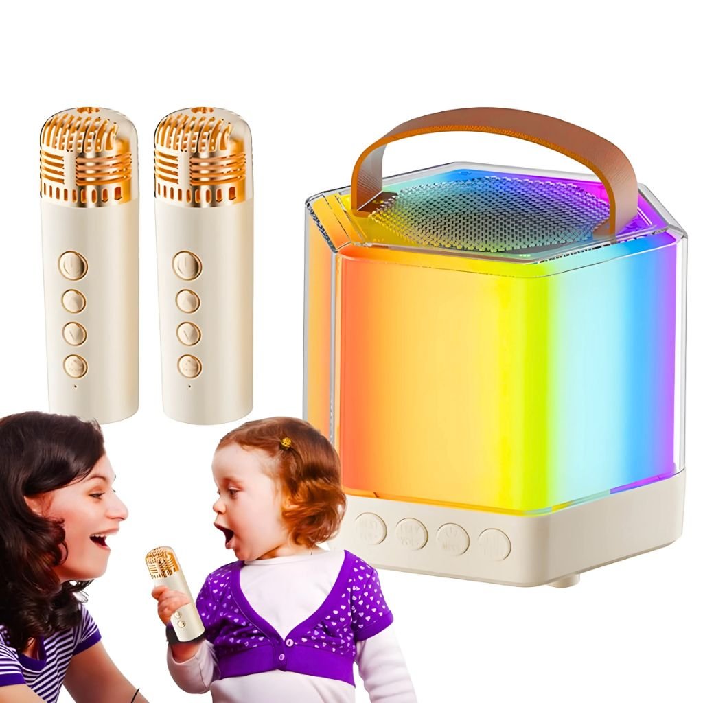 Effets stéréo dignes d’un film : Libérez tout le potentiel de votre voix grâce à la technologie audio avancée de notre machine de karaoké. La puissante bobine et la puce de réduction du bruit DSP fonctionnent en tandem pour un son digne d’un film. Éclairage RVB dynamique : créez une atmosphère vibrante et énergique avec l’éclairage RVB plein de vivacité de notre machine de karaoké qui change en synchronisation avec le rythme de la musique, rendant vos fêtes inoubliables. Clarté audio améliorée : améliorez votre expérience de karaoké avec la puce intelligente de notre machine qui fournit des voix et des instrumentaux riches pour une séance de chant fluide et agréable, garantissant une expérience de chant heureuse à chaque fois. Divertissez-vous n’importe où : profitez d’un son fluide avec une machine à karaoké parfaite pour n’importe quel environnement, légère pour les voyages et équipée d’une batterie longue durée pour un plaisir prolongé.