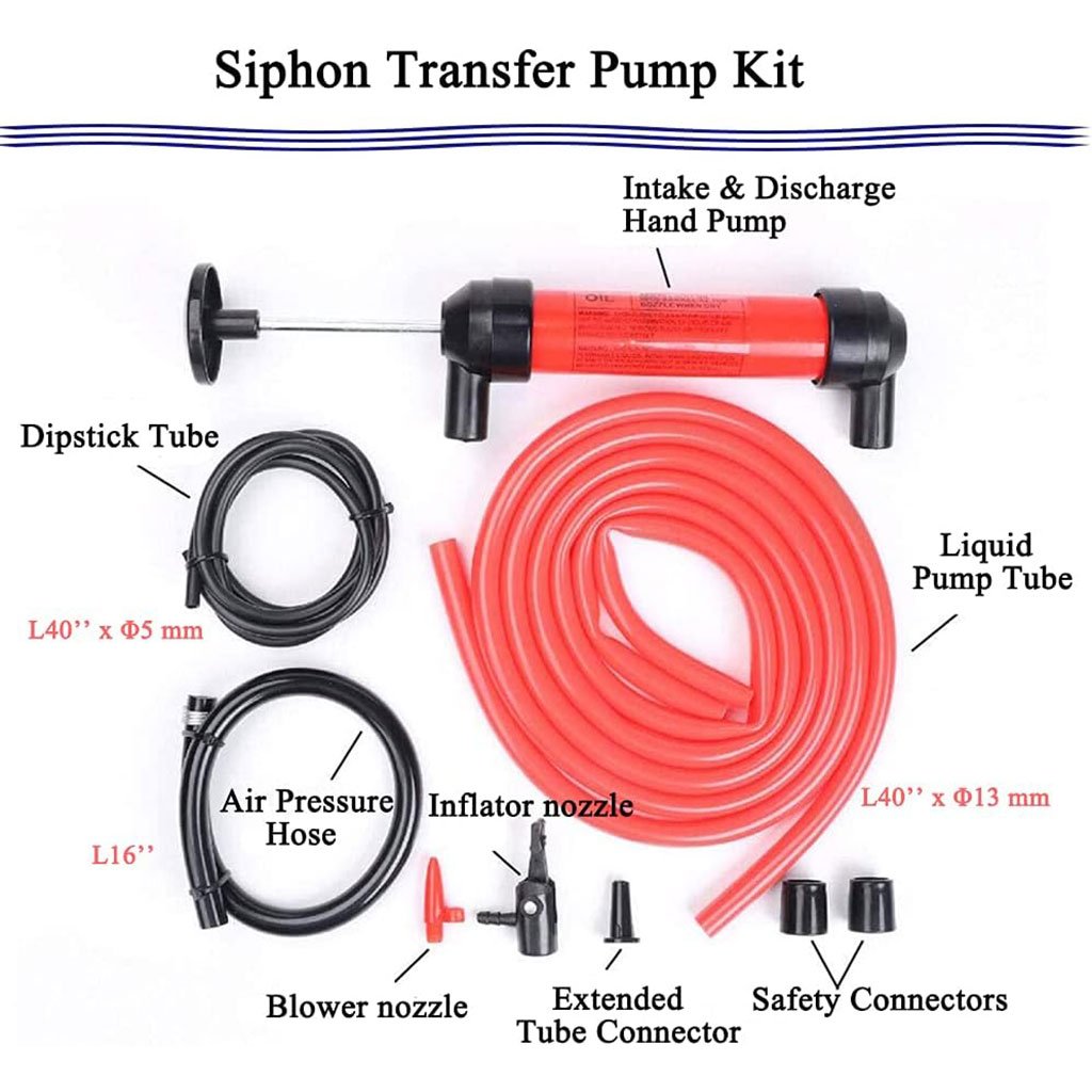 Bonne qualité Cette nouvelle version de pompe à huile d’admission et de refoulement est fabriquée à partir de matériaux de haute qualité. Robuste et durable, elle est dotée d’une structure en ABS légère et résistante. Son timon robuste et durable, et sa poignée ronde permettent d’économiser de la main-d’œuvre et d’améliorer l’efficacité du travail. Large compatibilité Cette pompe à carburant d’urgence efficace et pratique est très adaptée pour fournir du carburant à tous les petits réservoirs de carburant tels que VTT, bateaux, jet-skis/PWC, générateurs, coupe-bordures, coupe-bordures, tracteurs à gazon, motoneiges, souffleurs de feuilles, équipements agricoles, etc. Haute efficacité Cette pompe de refoulement de liquide peut débiter jusqu’à 12 litres de liquide par minute, ce qui est très efficace. De plus, elle est facile à démonter et à nettoyer, ce qui permet de recharger l’équipement en carburant et de le démarrer efficacement. Fonction puissante Ce kit de pompe de transfert 3 en 1 permet de gonfler, de vider et de comprimer. Il peut servir de gonfleur pour jouets aquatiques, ballons de sport et pneus de vélo. Ensemble d’outils complet Cet ensemble d’outils de pompage polyvalent comprend deux tuyaux d’aspiration d’huile, une pompe à air, des raccords d’extension, une gaine et d’autres outils. Il permet d’extraire et d’insérer en toute sécurité des liquides tels que l’huile, le gaz et l’eau. Il peut également servir à gonfler des pneus, etc.
