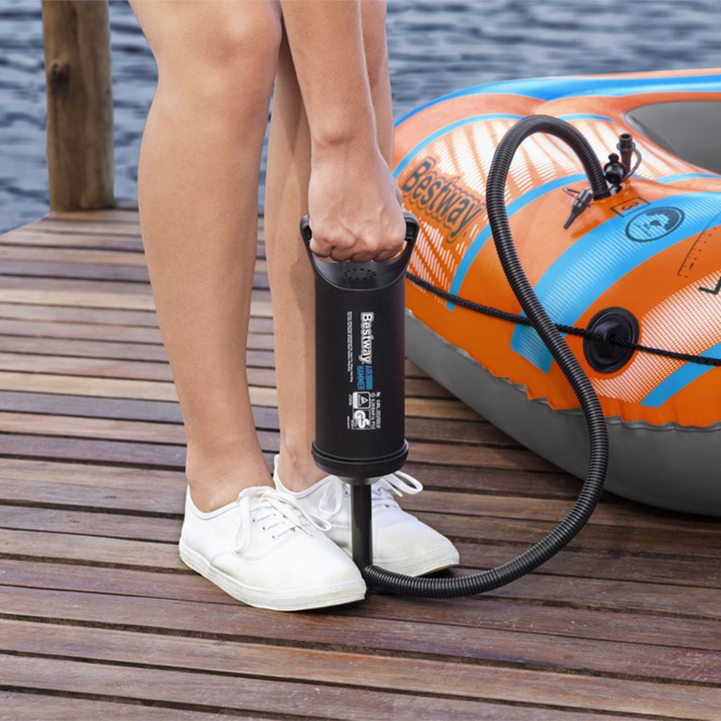 Pour gonfler rapidement votre matelas, votre roue ou votre ballon de plage, une pompe Bestway est indispensable. Grâce à son embout remplaçable, elle est idéale pour tous types d’articles gonflables. Elle pompe l’air de haut en bas, réduisant ainsi considérablement le temps de gonflage. Sa petite taille la rend idéale pour l’emporter à la piscine ou à la plage. Caractéristiques principales : – 3 embouts interchangeables – pompes dans les deux sens – tuyau flexible – longueur 30 cm – Capacité de 850 cm3 Poids: 0,4 kg Dimensions du colis : 9 cm x 11 cm x 31 cm
