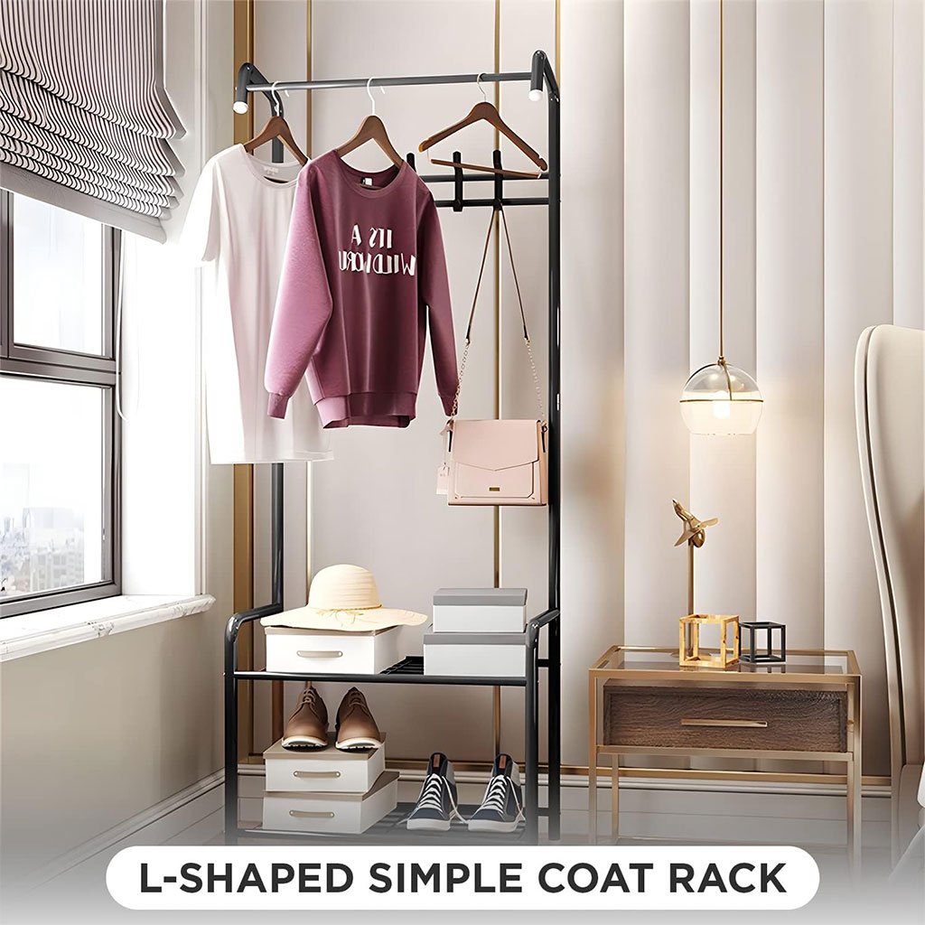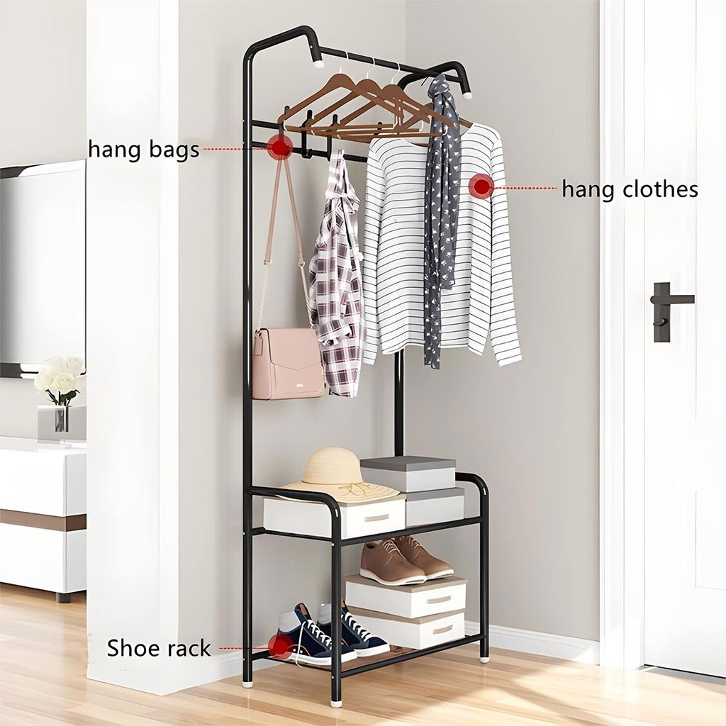 | رف معاطف معدني ومنظم أحذية مع علاقات 21 | 1 5500.0 د.ج |