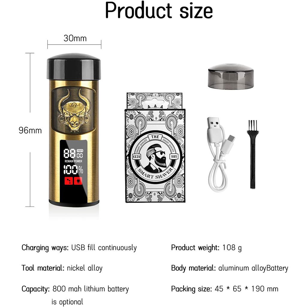 Style de sculpture antique Grâce à la conception de chargement cachée en bas, vous pouvez charger le rasoir sans aucun port exposé écran d’affichage LED TÊTE DE COUPE À LAME ROTATIVE PROPRE ET AFFÛTÉE Dimensions du produit : 9,6 x 3 x 3 cm; 108 g Fabricant : Kemei Numéro de modèle de l’article : KM-1328