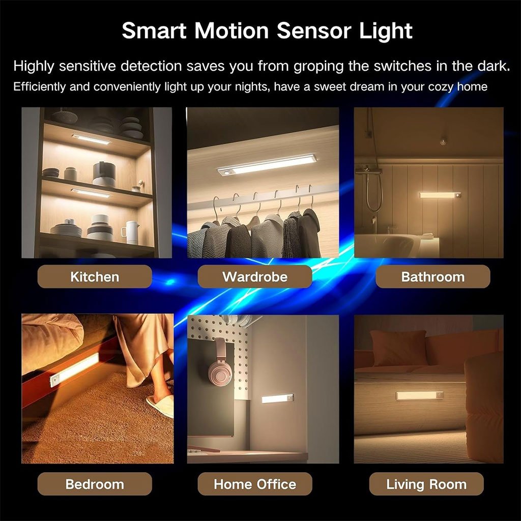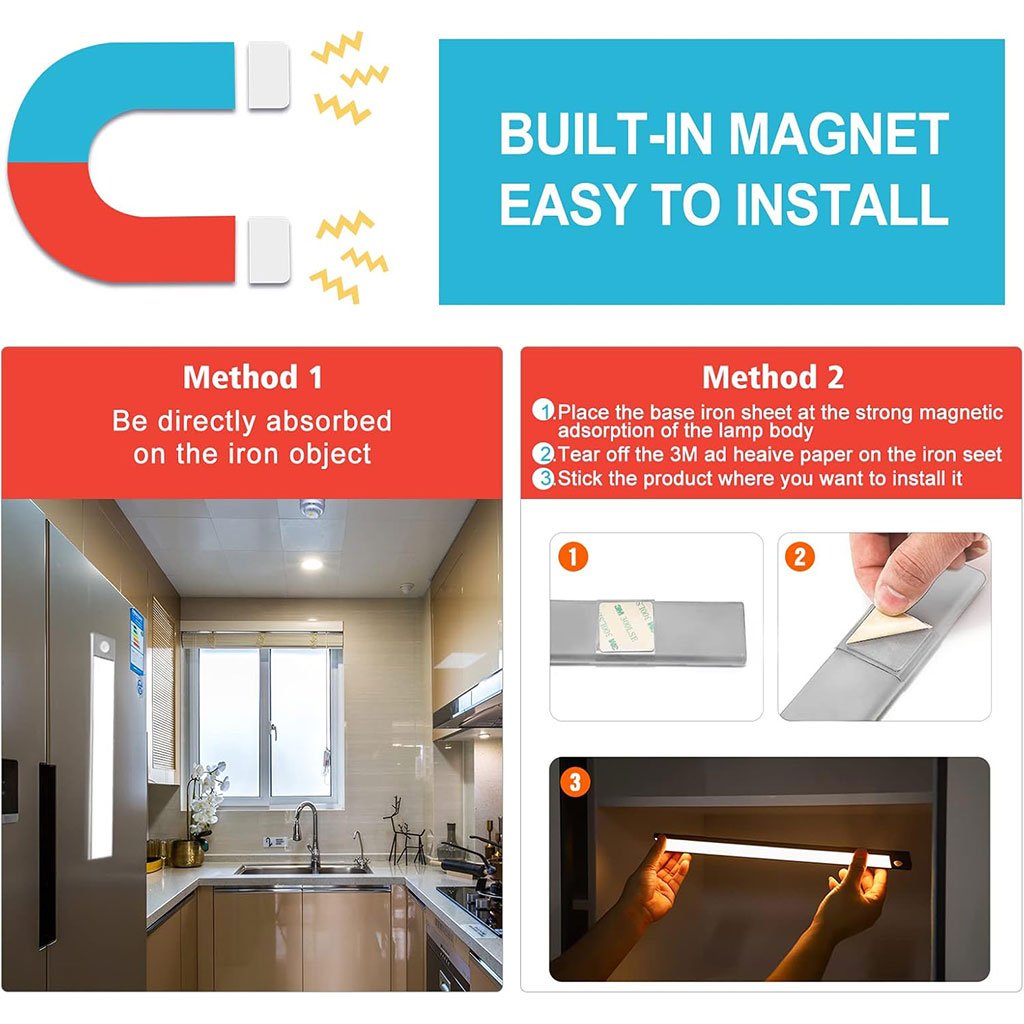 【Innovante Conception de L’éclairage】Avec des billes LED innovantes à “effet de colline”, l’éclairage d’armoire LED commandé par capteur émet un faisceau lumineux arqué qui recrée le contour d’une colline. En fonction du lieu d’installation, la lampe led sans fil produit des effets d’éclairage complexes et uniques. 【3 Couleurs et Luminosité Réglable】La lumiere detecteur de mouvement interieur offre 3 options de température de couleur, vous pouvez commuter le bouton pour commuter le blanc chaud (3000K), le blanc neutre (4500K), le blanc froid (6500K). La fonction de gradation continue vous permet d’ajuster la luminosité de 5% à 100% (100-300 lumens) selon vos besoins. 【3 Modes pour Différents Besoins】Notre veilleuse detecteur de mouvement dispose de trois modes pour répondre à des besoins différents: ①Mode capteur de mouvement : il s’allume automatiquement lorsqu’un mouvement humain dans un rayon de 3 mètres/120° est détecté dans un environnement sombre et s’éteint après 25 secondes.② Mode toujours allumé : peut être utilisé comme lampe de poche.③ Mode éteint.Les 3 modes répondent à vos différents besoins. 【Haute Capacité de La Batterie 800mAh】Cette led cuisine est équipée d’une batterie rechargeable de haute capacité de 800mAh, qui peut être facilement rechargée en 3 heures via un câble USB. Après avoir été complètement rechargées, ces lampes peuvent fonctionner jusqu’à 6-10 heures en mode toujours allumé et pendant 1-2 mois en mode capteur de mouvement. Le port de charge de type C rend la recharge plus pratique. 【Easy Installation】Grâce aux puissants aimants incorporés aux deux extrémités, il peut être fixé à n’importe quelle surface en fer. Vous pouvez également utiliser la feuille de fer incluse pour le fixer à toute surface non ferreuse. Les lampes à détecteur de mouvement d’intérieur conviennent à la cuisine, à l’armoire, à la garde-robe, à la chambre à coucher, à la salle de bain, à l’étagère, au garage, au couloir, aux escaliers, etc. Marque HY-2012 Fabricant HY-2012 Dimensions du produit (L x l x h) 30 x 4 x 1,1 cm; 200 grammes Pile(s) / Batterie(s) : 1 Lithium-polymère – incluse(s) Style Moderne Types de finition Peinte Nombre d’ampoules 3 Usages spécifiques Cuisine Caractéristiques spéciales Température de couleur réglable Couleur de l’abat-jour Blanc froid Piles incluses ? Oui Batterie(s) / Pile(s) requise(s) Oui Poids de l’article 200 g