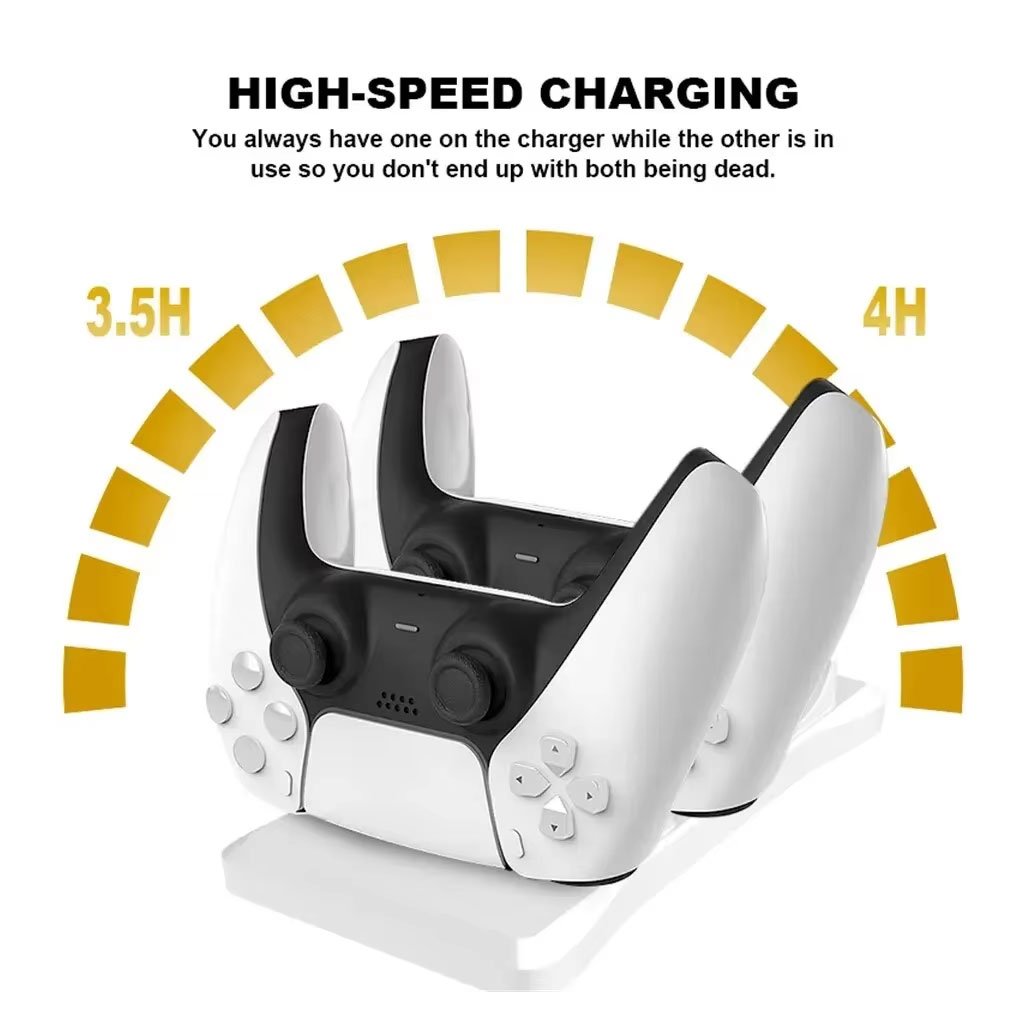 • Double station de chargement : Chargez deux contrôleurs PS5 simultanément grâce à la fonction double station de chargement. • Charge rapide : Le chargeur YH-047 P5 pour station de contrôle PS5 offre une charge rapide, garantissant que vos contrôleurs sont prêts à l’emploi en un rien de temps. • Chargement sans fil : Grâce à la fonction de chargement sans fil, vous pouvez charger vos contrôleurs PS5 sans avoir besoin de câbles, ce qui les rend plus pratiques et sans encombrement. • Certification CE : Le chargeur YH-047 P5 pour station de contrôle PS5 est certifié CE, garantissant qu’il répond aux normes de sécurité et de qualité établies par l’Union européenne. • Dimensions : 63x 31 x 161mm.