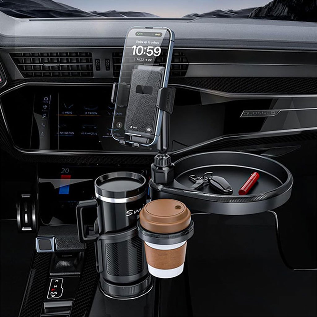 Détails exceptionnels : Notre organiseur de voiture allie finesse et fonctionnalité grâce à ses finitions en silicone souple et ses propriétés antidérapantes. Sa conception soignée comprend des coussinets absorbant les chocs et des pinces anti-rayures, garantissant un porte-gobelet en parfait état tout en préservant l’intérieur de votre véhicule. Conception rotative à 360° : Notre plateau amovible pour porte-gobelet automobile offre une flexibilité inégalée grâce à sa rotation à 360°. Ajustez votre téléphone et votre porte-gobelet à l’angle souhaité, garantissant ainsi l’accessibilité pour le conducteur et les passagers, tout en préservant un environnement épuré. Extension améliorée à deux sections : la base améliorée à deux sections de notre plateau porte-gobelet s’adapte à une variété de modèles de voitures, garantissant un ajustement sûr et personnalisé. L’installation est un jeu d’enfant, offrant une extension confortable d’un simple tour, améliorant ainsi l’adaptabilité à tous les véhicules. Multifonctionnalité 4 en 1 : Notre porte-gobelet extensible est une solution tout-en-un avec support de téléphone, tablette, porte-gobelet amovible et compartiment à gobelet. Idéal pour la route, son porte-gobelet rotatif à 360° et sa taille de gobelet adaptable simplifient chaque déplacement. Qualité et savoir-faire haut de gamme : Améliorez le confort de votre véhicule grâce à notre plateau extensible pour porte-gobelet, conçu en ABS, silicone et métal de qualité supérieure pour une longévité accrue. Profitez de la stabilité et de la polyvalence du bras de fixation extensible pour téléphone et du plateau intégré, pour garder vos essentiels organisés et en sécurité pendant vos déplacements. Caractéristiques : Matériau : ABS. Support de téléphone pour smartphones de 4,7 à 7,2″. Contenu du paquet : 1 x extenseur de porte-gobelet.