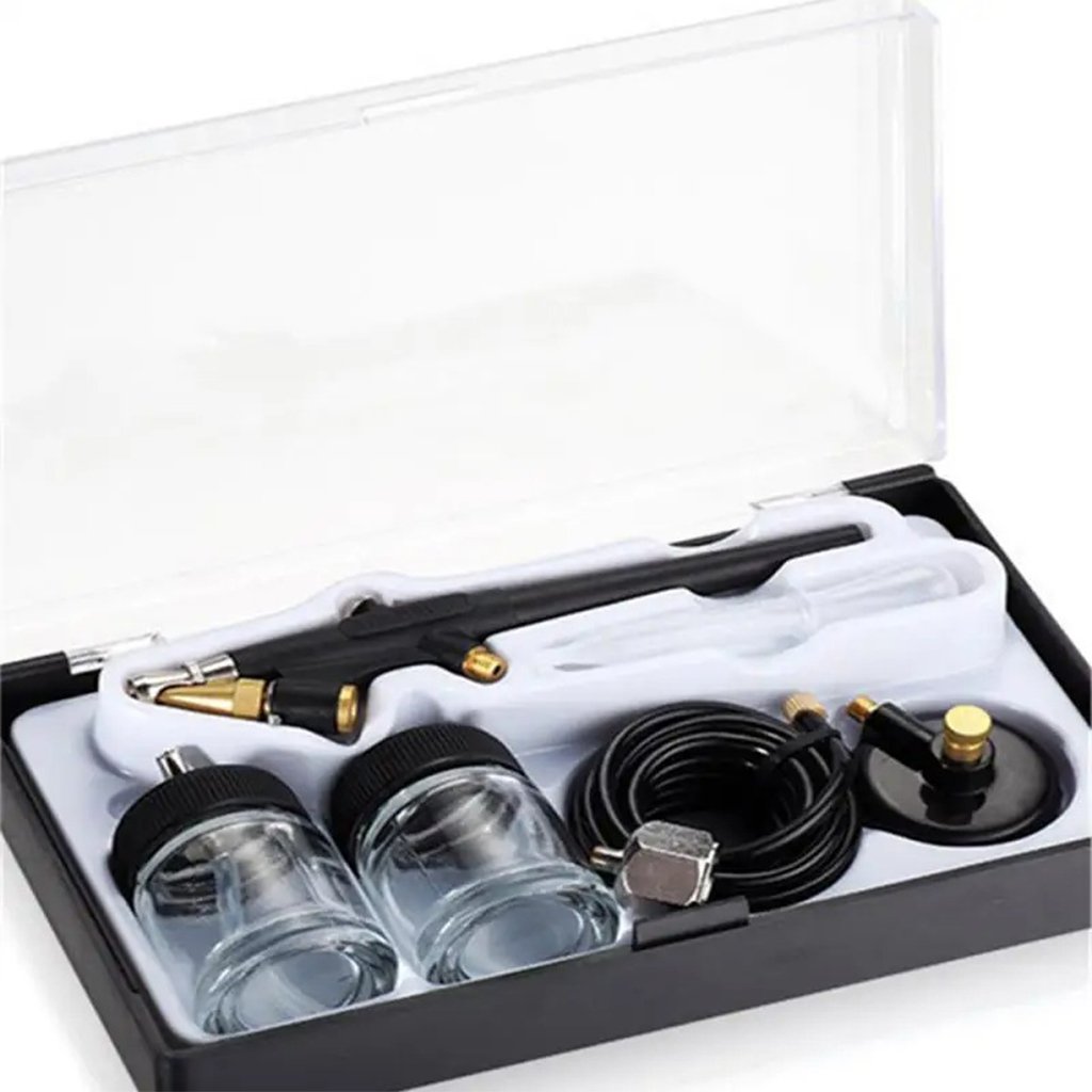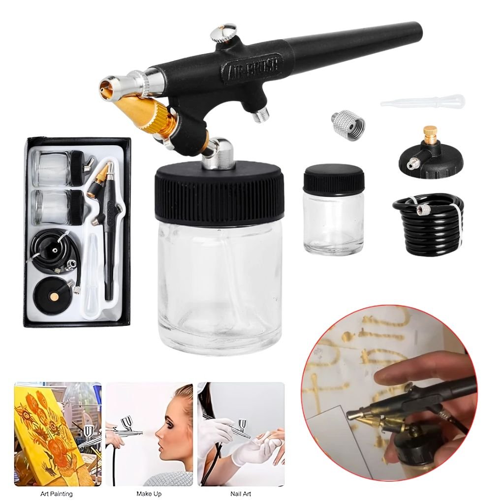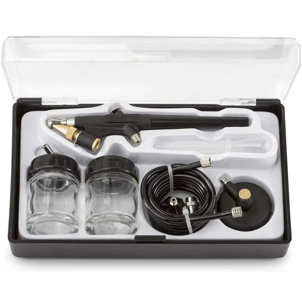 Excellent kit d’aérographe de démarrage pour les débutants, les étudiants, les bricoleurs, les amateurs et les bricoleurs ! Aérographe à simple action, alimentation par le bas, mélange externe avec une aiguille de 0,8 mm et un jet large Comprend : bouteilles de fluide d’alimentation par siphon de 3/4 oz, tuyau tressé de 1/8 po, tuyau en plastique de 5 pi, régulateur de propulseur Spray et supports de couleur : aquarelles, acryliques, encres et colorants, uréthanes automobiles, laques et émaux Applications courantes : aérographe général, loisirs, artisanat, modèles, panneaux, arrière-plans, t-shirts, RC