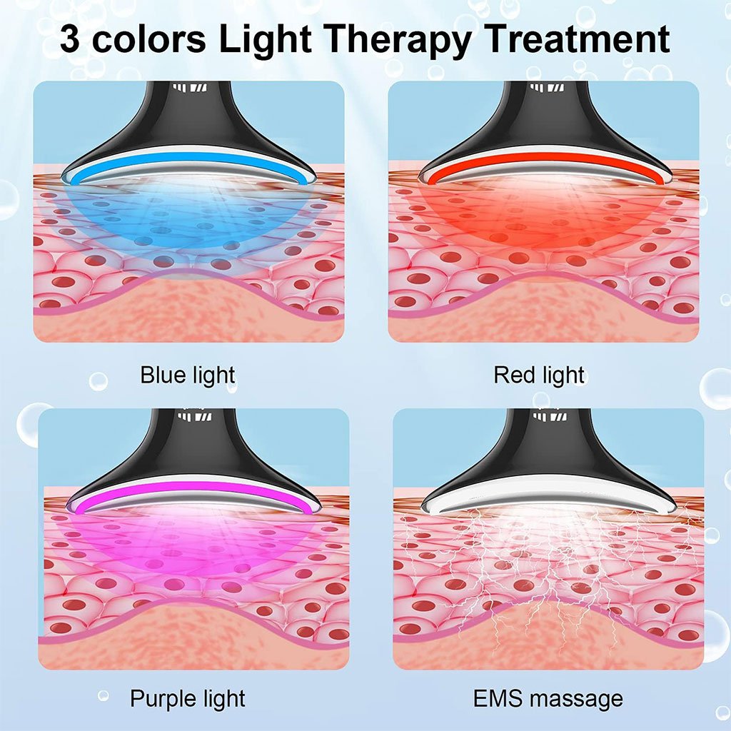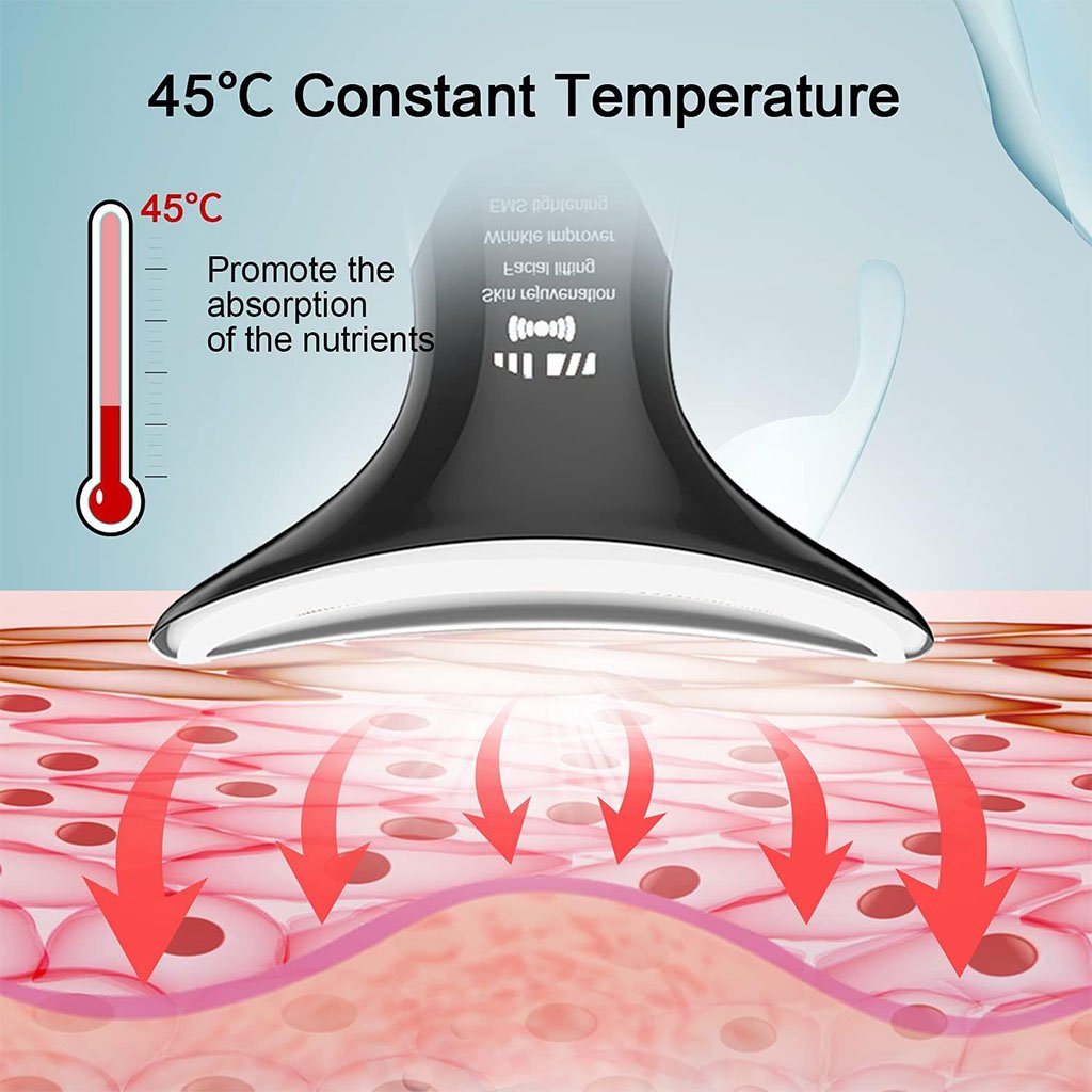 Fonctionnalité Élimination du double menton, drainage lymphatique, alimentation riche en plomb. 2. Lifting du cou, raffermissement de la peau 3. Anti-rides. 4. Préserve une beauté jeune et saine. 5. Importation d’ions, haute fréquence 11 000 fois/min, pour une pénétration profonde des produits de soin et une absorption optimale. 6. Trois modes de traitement LED sont disponibles : bleu, violet et rouge. 7. Le massage chaud ouvre les pores de la peau et permet une absorption optimale des produits de soin. 8. La forme arquée épouse parfaitement les courbes du cou et du corps pour un massage fluide. 9. Chargement par câble USB, facile et portable. 10. Outre le cou, la tête de massage convient également aux épaules et autres parties du corps. Améliore l’efficacité de vos produits de soin sur toutes les parties du corps. Spécification Type d’article : Appareil pour le cou à double menton Couleur : Blanc Matériau : ABS Tension : 5 V Puissance : 2,5 W Temps de charge : 3,5 heures Batterie : 750 mAh Poids : 80 g Taille : 13 x 9 cm/5,12 x 3,54 pouces Le produit comprend 1*Machine principale 1*USB 1*Manuel 1*Boîte