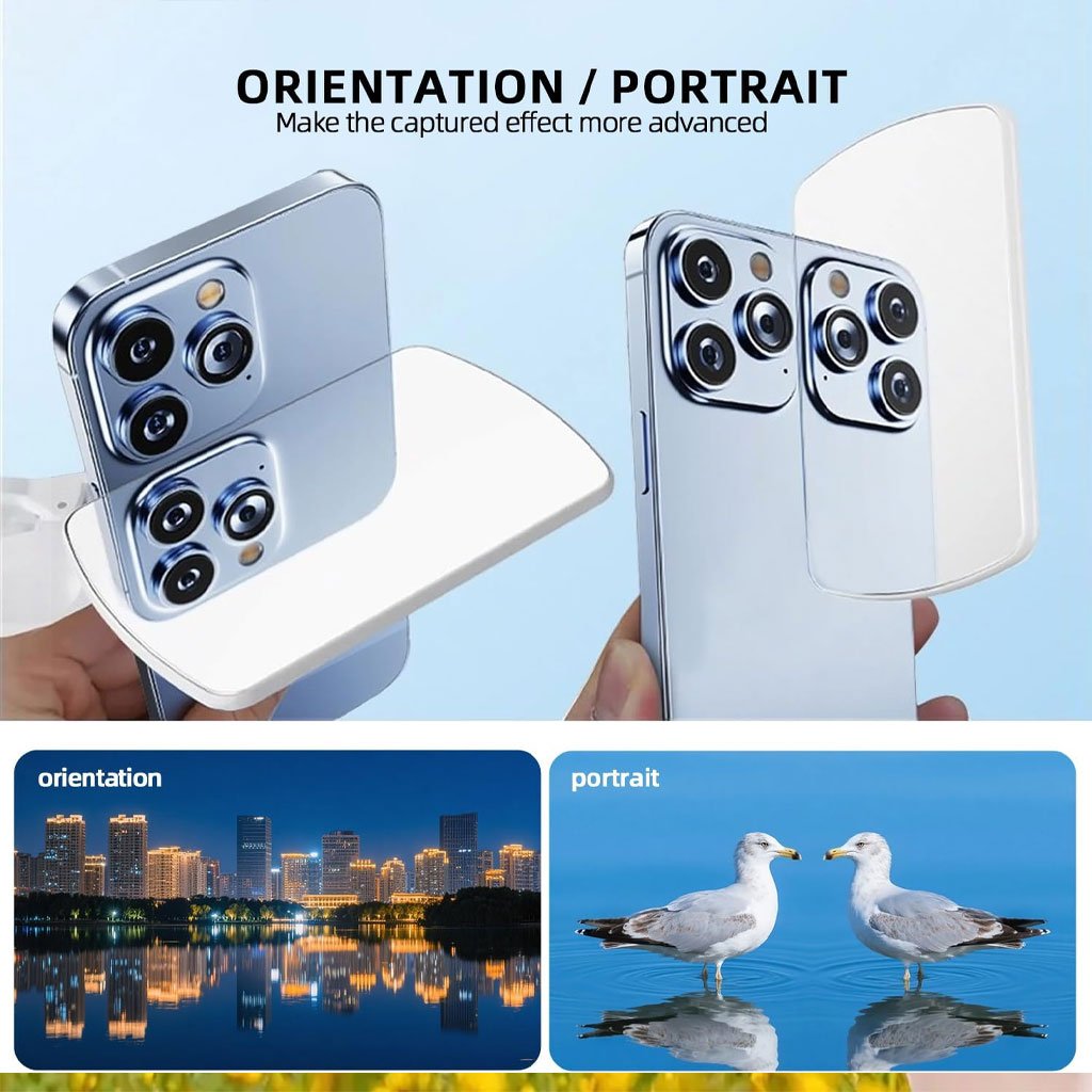 Créez facilement des photos de ciel miroir magiques : Transformez votre smartphone en outil photo créatif grâce à ce clip de réflexion Sky Mirror. Capturez de superbes effets de ciel à l’envers et des reflets oniriques dans des environnements réels, sans filtre ni application. Cet accessoire est idéal pour les tendances TikTok, les Reels Instagram et les amateurs de photographie de nature qui souhaitent apporter une touche visuelle unique. Miroir et filtre réfléchissant 2 en 1 pour selfies avec caméra arrière : cet accessoire à clip double fonction fait à la fois office de miroir pour selfies avec caméra arrière et de filtre réfléchissant. Profitez de selfies plus nets et de meilleure qualité en utilisant la caméra arrière de votre téléphone tout en vous regardant clairement dans le miroir. Idéal pour les créateurs de contenu, les influenceurs et tous ceux qui en ont assez des photos granuleuses de la caméra frontale. Clip universel – Compatible avec la plupart des smartphones : Fixez facilement le clip miroir à presque tous les iPhone, Samsung Galaxy ou téléphones Android grâce à son clip universel souple et flexible. Sa prise stable n’endommagera pas votre appareil et s’adapte aux appareils photo mono-objectif et multi-objectifs. Un accessoire photo indispensable pour votre sac de voyage ou votre trousse à outils. Léger, portable et facile à transporter : Compact et léger, ce miroir selfie se glisse facilement dans votre poche ou votre sac à main. Que vous photographiiez des lacs pittoresques, des bâtiments en verre ou des flatlays créatifs, c’est le compagnon idéal pour la photographie en extérieur, le vlog et la créativité nomade. Plus besoin de transporter du matériel encombrant : il suffit de clipser et de déclencher. Spécifications : Nom du produit : Verre à selfie pour téléphone portable Matériau : ABS Couleur : noir, blanc Taille du produit : 9x7cm Installation : fixation à clip Téléphone portable applicable : tous