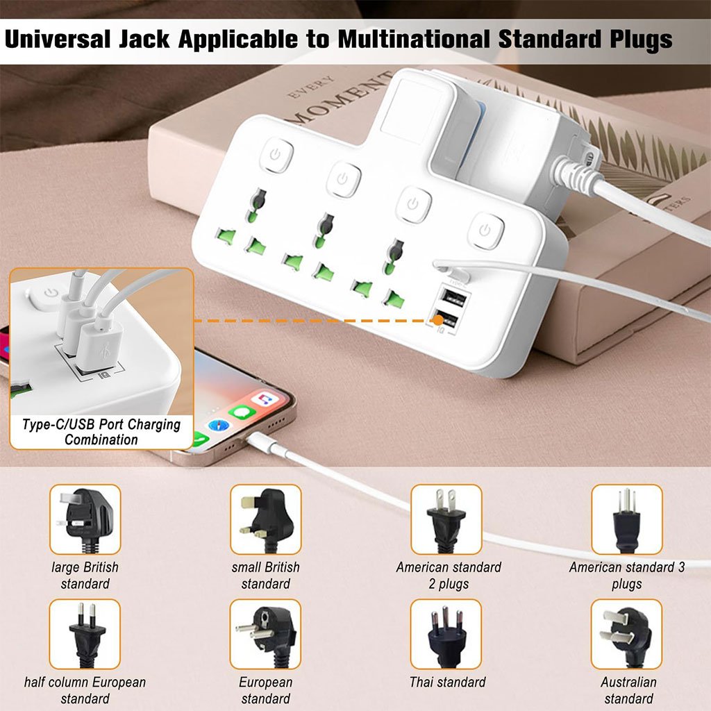 Extension de prise murale : 3 prises, 3 ports USB, 3 prises secteur, 2 ports USB + 1 port Type-C (5 V 2,1 A) et 4 interrupteurs indépendants avec voyants lumineux. La puissance maximale peut atteindre 2 500 W (100-250 V, 10 A). Interrupteur indépendant avec veilleuse : appareil doté d’un interrupteur pour veilleuse. La lumière est douce et non éblouissante. L’interrupteur indépendant et le voyant lumineux sont entièrement contrôlés par l’alimentation et permettent une économie d’énergie accrue. Prise universelle : les prises universelles peuvent être utilisées avec des prises du monde entier et fournissent l’alimentation nécessaire aux équipements électriques pour assurer leur bon fonctionnement. Elles offrent davantage d’interfaces d’alimentation pour faciliter l’utilisation de plusieurs appareils. Conception à l’épreuve des enfants : Porte de sécurité au design créatif, spécialement conçue pour protéger les jeunes enfants. Elle empêche efficacement les enfants de recevoir des décharges électriques en insérant leurs doigts dans les prises.
