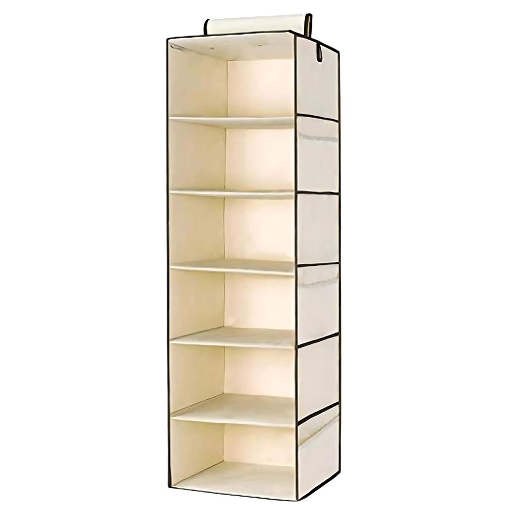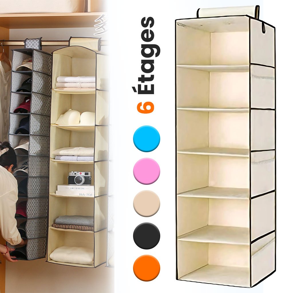 Cet organiseur suspendu à 6 niveaux permet de ranger soigneusement et en ordre les objets du quotidien. Il comporte six compartiments avec une fenêtre zippée pour protéger les vêtements de la poussière. Les tiroirs offrent un espace de rangement optimal. Sa conception permet une suspension facile, facilite l’organisation et prend peu de place. Dimensions de l’organiseur : 30 x 30 x 120 cm. Non lavable, ne pas repasser ni sécher au sèche-linge ; utiliser un chiffon sec pour le nettoyage. Gardez vos affaires bien rangées grâce à cet organiseur suspendu à six niveaux. Il se fixe solidement à n’importe quelle tringle à vêtements et sa conception robuste vous permet de supporter des charges lourdes sans vous baisser. Veuillez mesurer la distance entre la tringle à vêtements et le sol avant l’achat. Ce produit est idéal pour ceux qui souhaitent optimiser leur espace. Ces étagères suspendues sont très faciles à installer. Il suffit de les accrocher à la tringle à vêtements pour obtenir 6 étagères spacieuses pour ranger pulls, jeans ou tout ce dont vous avez besoin. Utilisez cette étagère suspendue comme rangement dans la chambre de votre bébé ou de votre enfant. Optimisez l’espace de votre garde-robe grâce à cet organiseur. Vous avez tout sous les yeux. Un espace spacieux pour ranger vêtements et accessoires tels que pulls, sweat-shirts, serviettes, pyjamas, chapeaux, accessoires et bien plus encore.