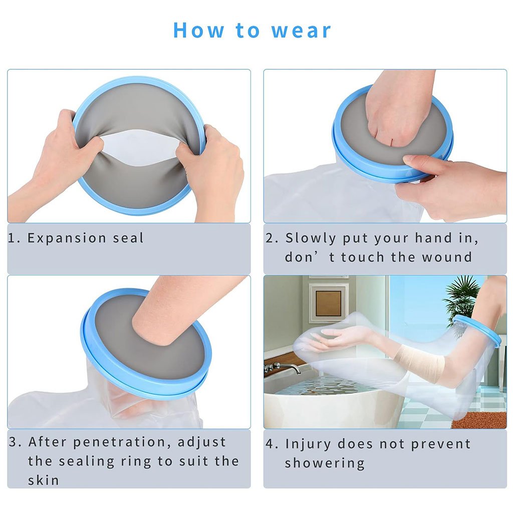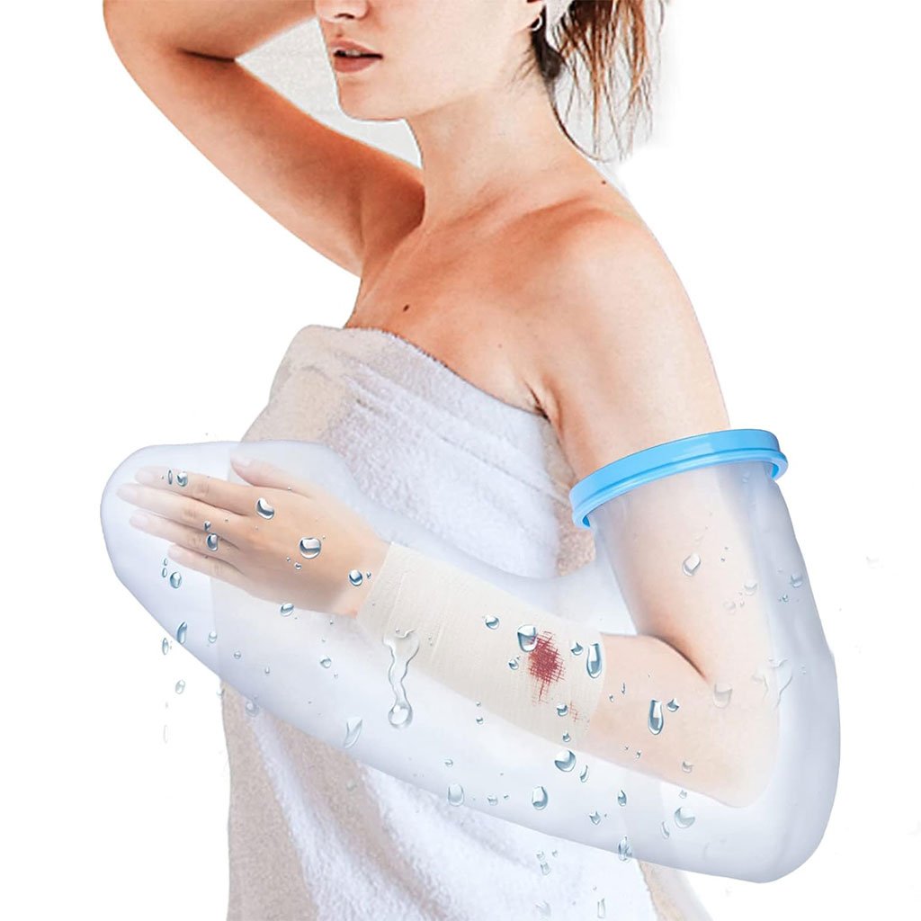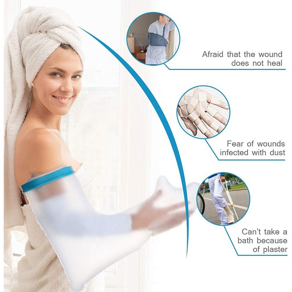 COUVERCLE DE BRAS DE DOUCHE LÉGER : Le caoutchouc de l’ancien modèle laissait facilement des traces sur la peau. Le couvre-plâtre complet de l’ancien modèle adhère facilement au bras. Le caoutchouc du nouveau couvre-plâtre complet est si souple qu’il ne laisse aucune trace sur la peau et ne colle pas. La membrane élastique scellée ne bloque pas la circulation sanguine. Empêche efficacement la pénétration de l’humidité : Idéal pour la douche et le bain. Particulièrement adapté aux personnes se remettant d’une opération ou de problèmes de peau. La housse imperméable protège la partie blessée. Recommandé pour la douche, le bain ou les activités de plein air après une blessure, une opération, un accident ou en cas d’affections telles qu’éruptions cutanées, brûlures, problèmes de peau ou plaies. COUVERTURE DE PLÂTRE IMPERMÉABLE POUR BRAS : Cette housse de plâtre imperméable est idéale pour la douche et le bain. D’une longueur de 60 cm, elle s’étend jusqu’au bras, ce qui la rend idéale pour couvrir les blessures aux doigts et au bras. Matériau léger, hygiénique et lavable, elle ne colle pas au bras. L’ouverture centrale flexible, extensible jusqu’à 15 cm de diamètre, est suffisamment large pour permettre le passage du plâtre, mais suffisamment serrée pour empêcher l’eau de passer. PROTECTION DE L’ENVIRONNEMENT : Notre membrane de protection pour plâtre est fabriquée en silicone de qualité médicale. Le manchon est en PVC, un matériau antidérapant qui ne colle pas au bras. Sans latex, sans odeur ni goût, il est facile à laver. Son ouverture élastique souple permet un enfilage et un retrait faciles et indolores. Dimensions : 60x15cm